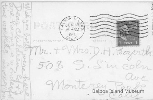 Sent on June 18, 1949 to Mr. & Mrs. D. H. Bozarth in Monterey Park, California.Subject