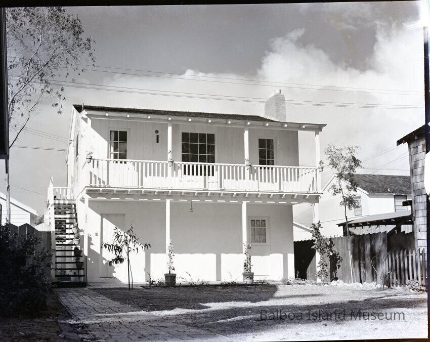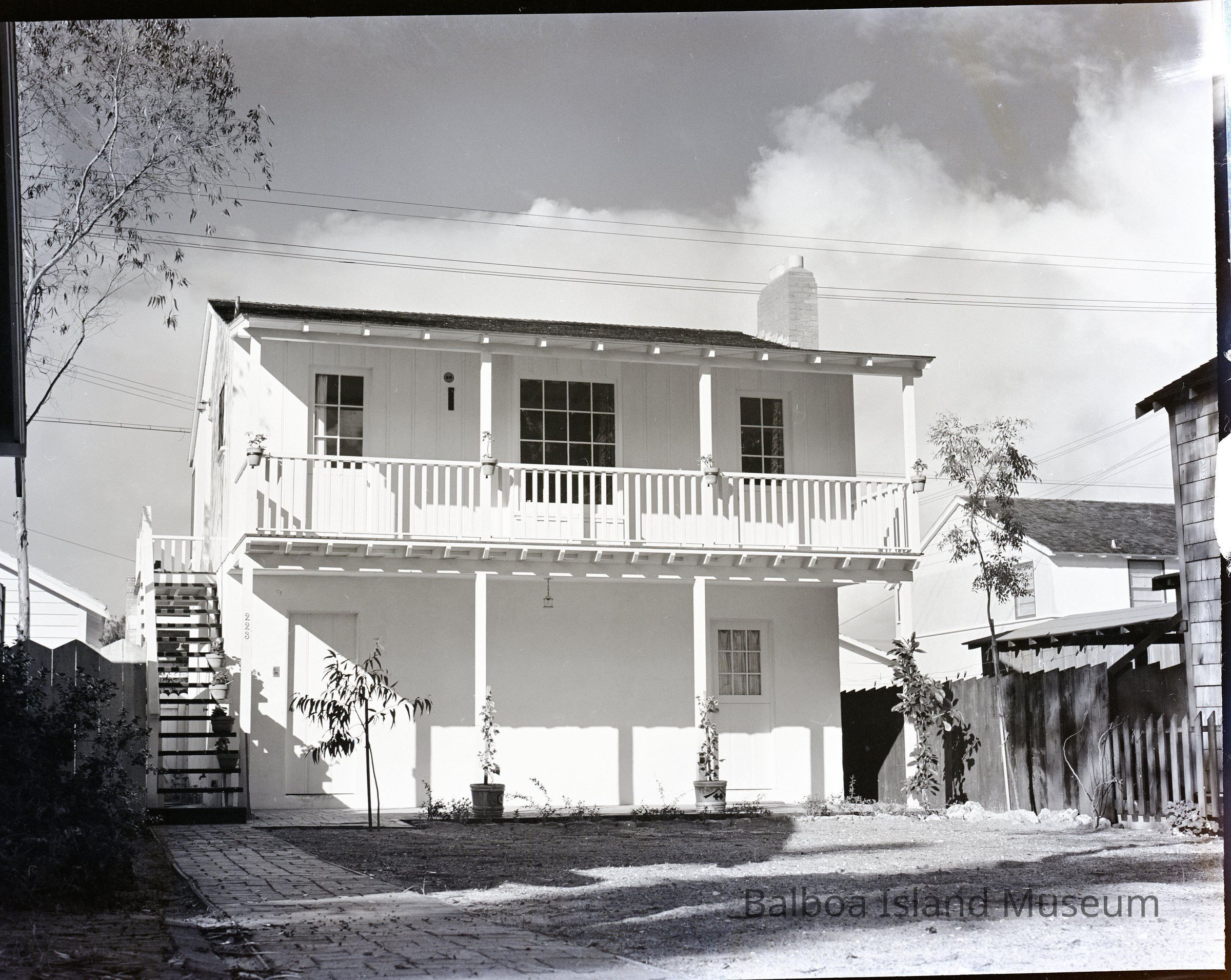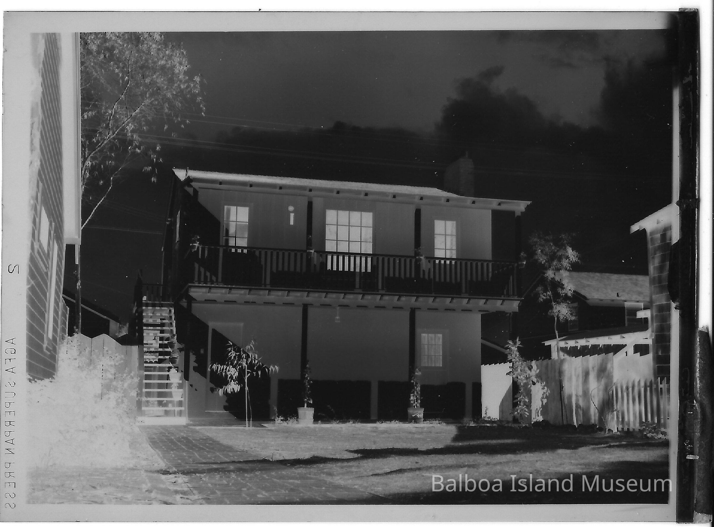 Photograph negative. Image is of 223 Coral avenue. The two is two stories with a balcony on tyhe second and a staircase on the right side leading to the second floor and an additional door.Collection