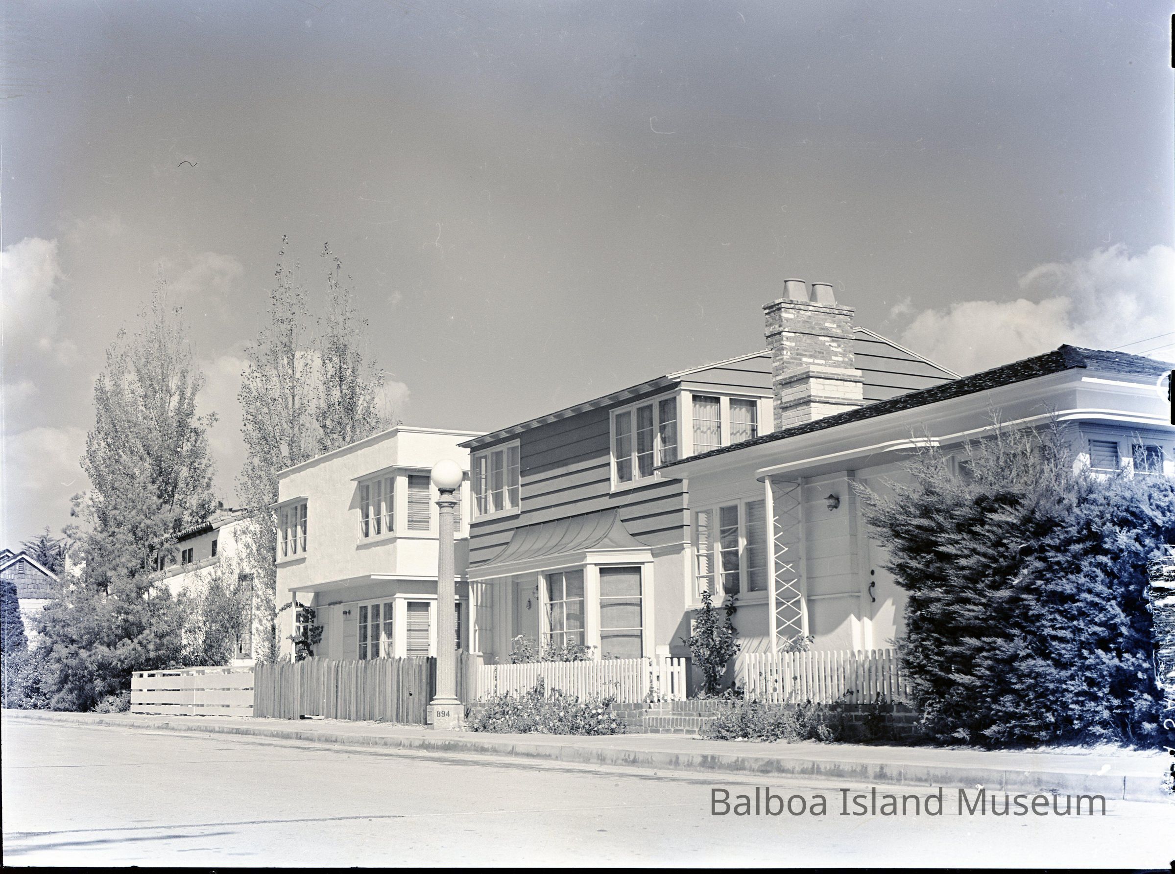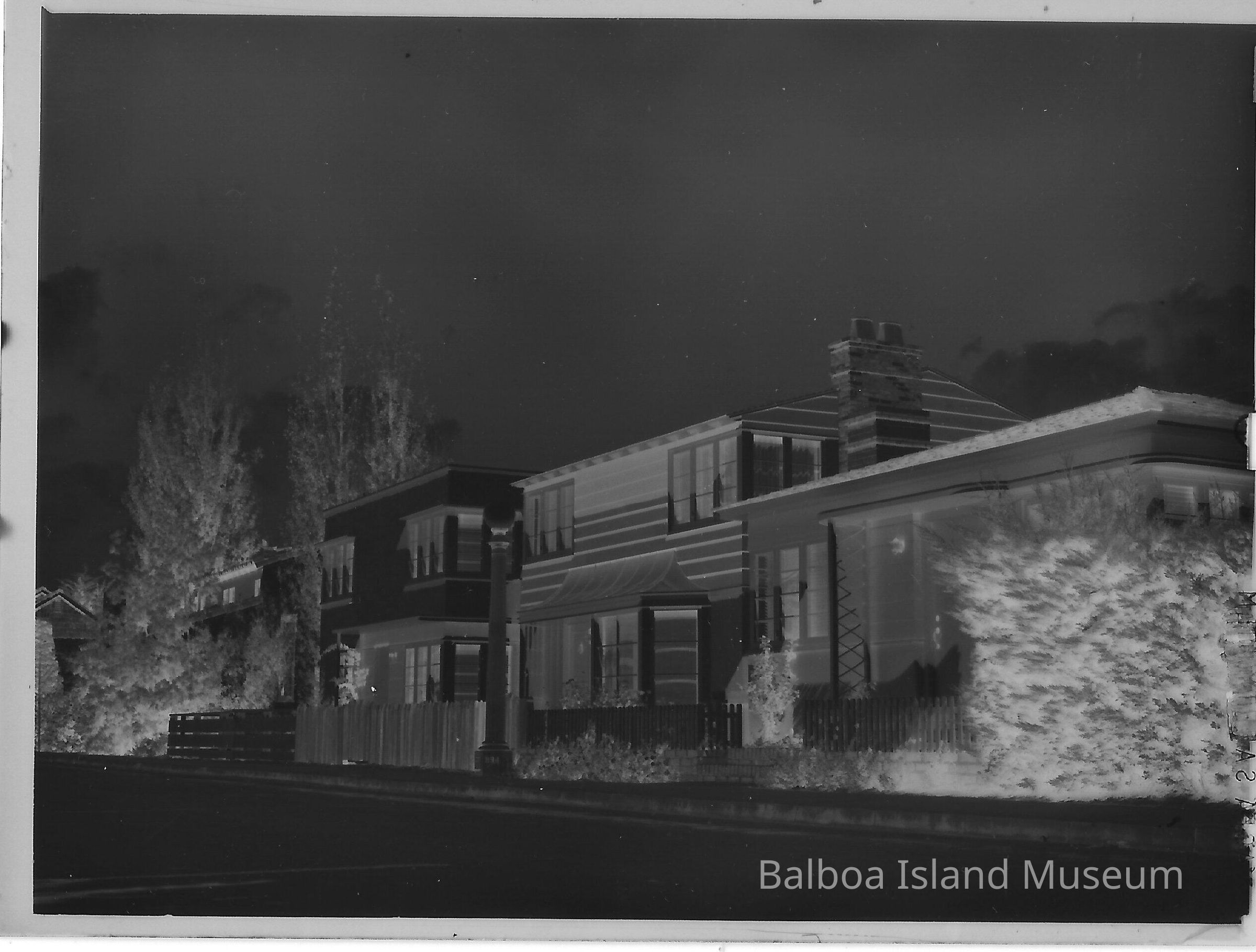 Phptograph negative. Image of a block of Crystal Avenue. The image shows four houses. Three of the houses were two stories tall and the front most house is one story tall.Collection