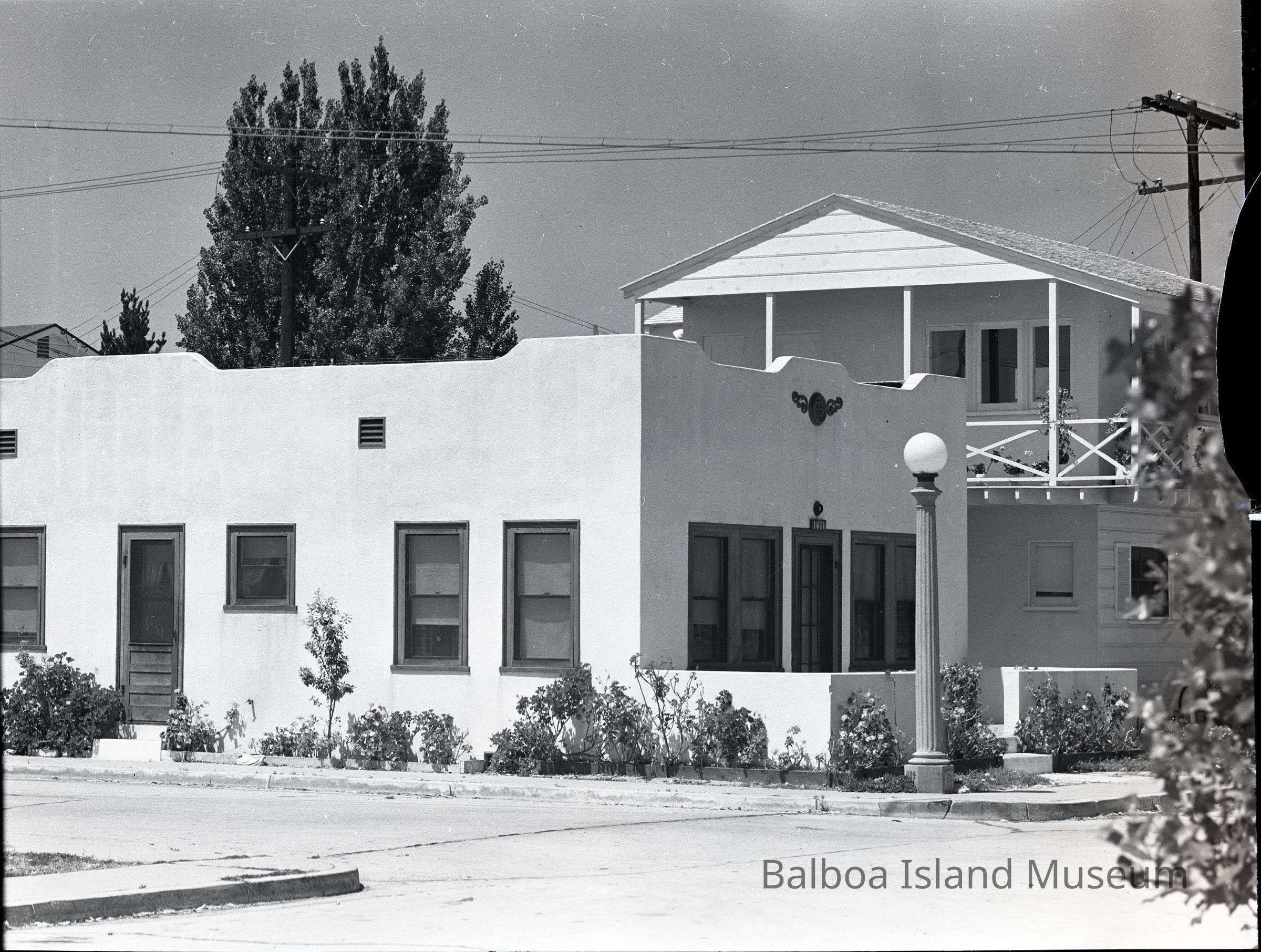 Photograph negative. The image is of a corner house thought to be 1611 Balboa Avenue. The print is catalogued as 2014.02.20.Collection