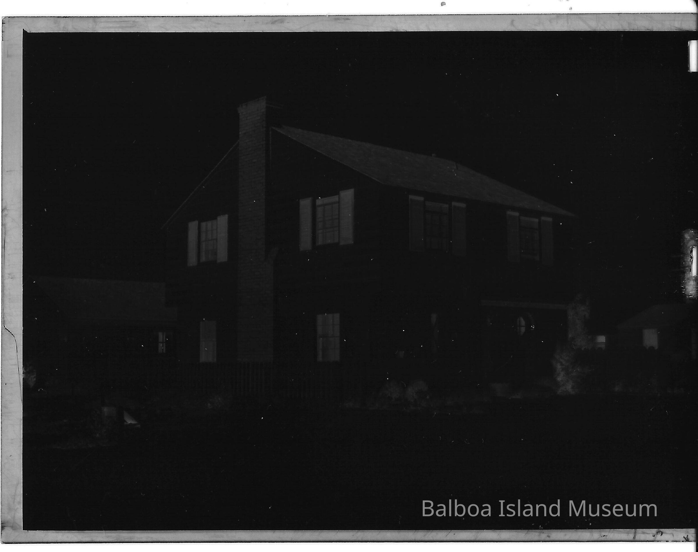 Photograph negative. The image is of the Mackintosh house at 317 Amethyst Avenue. The house is two stories tall and has a chimney on the left wall surrounded by four windows.Collection