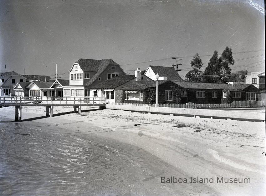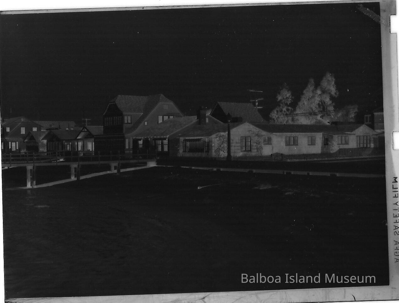 Photograph negative. The image features five houses along Bay Front and is taken from an angle. The image consists of five houses, including what appears to be a Dutch Colonial house.