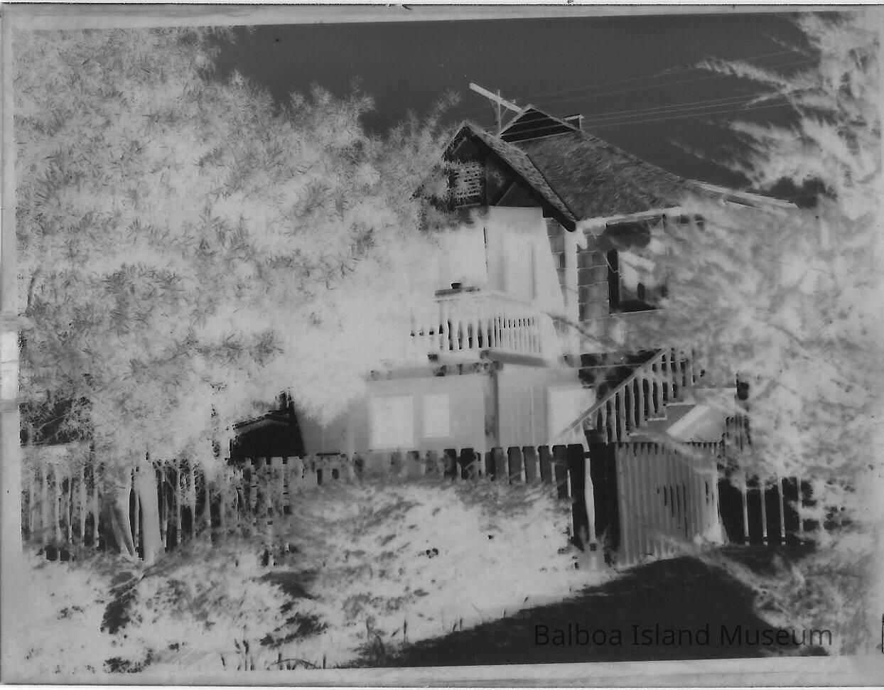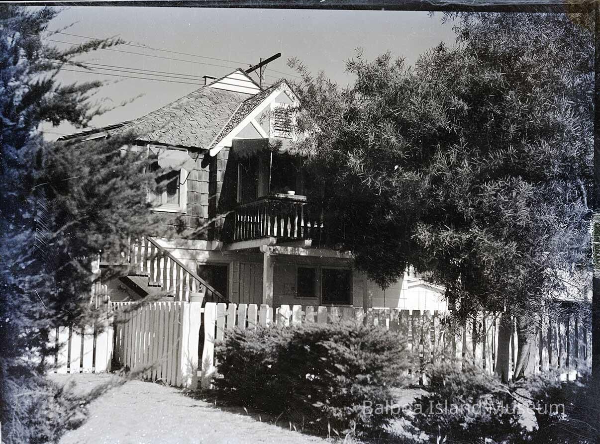 Photograph negative. The image is of a two story Victorian style house with a gae around the front and a set of stairs along the front running to a second floor. There is also a balcony on the front of the house. The image is listed as being 1 Coral (22?-5-2).Collection