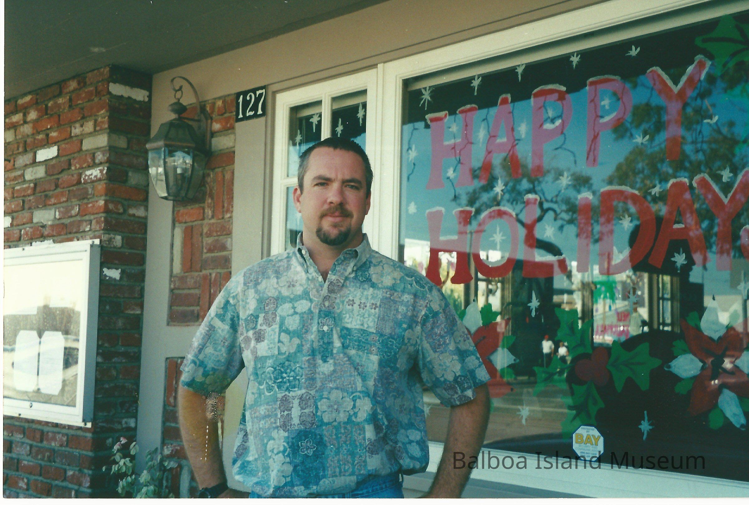 A photograph of Aric Toll, owner of the Village Inn, in front of The Village Inn at 127 Marine Avenue.Lexicon