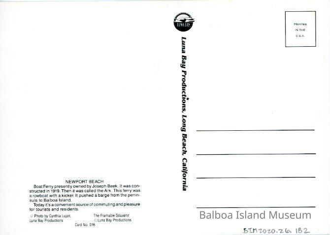 Balboa Island Ferry, J. A. Beek BuildingSubject Place