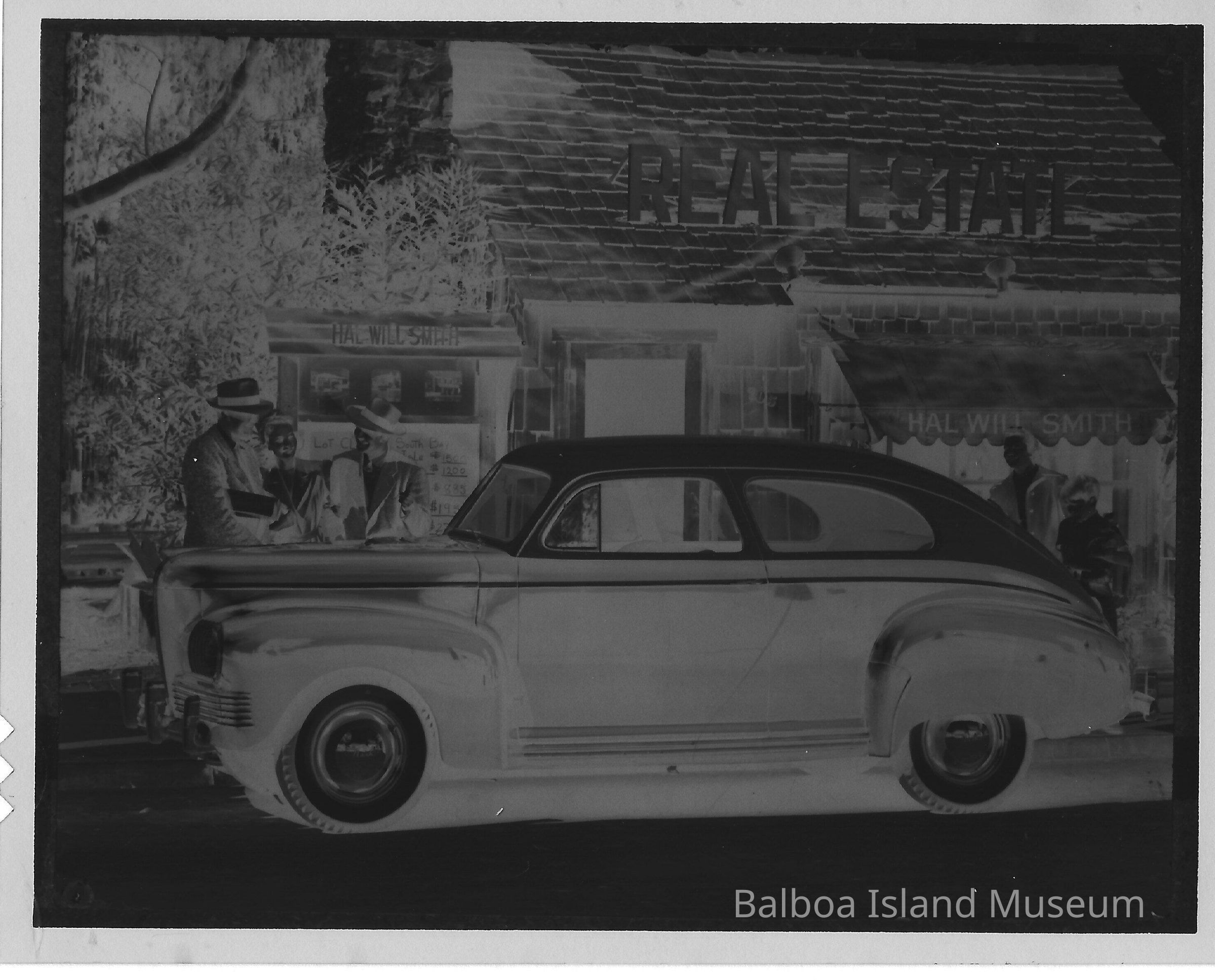 Negative 1941 Nash Ambassador Advertisement in front of Hal Will Smith Realty