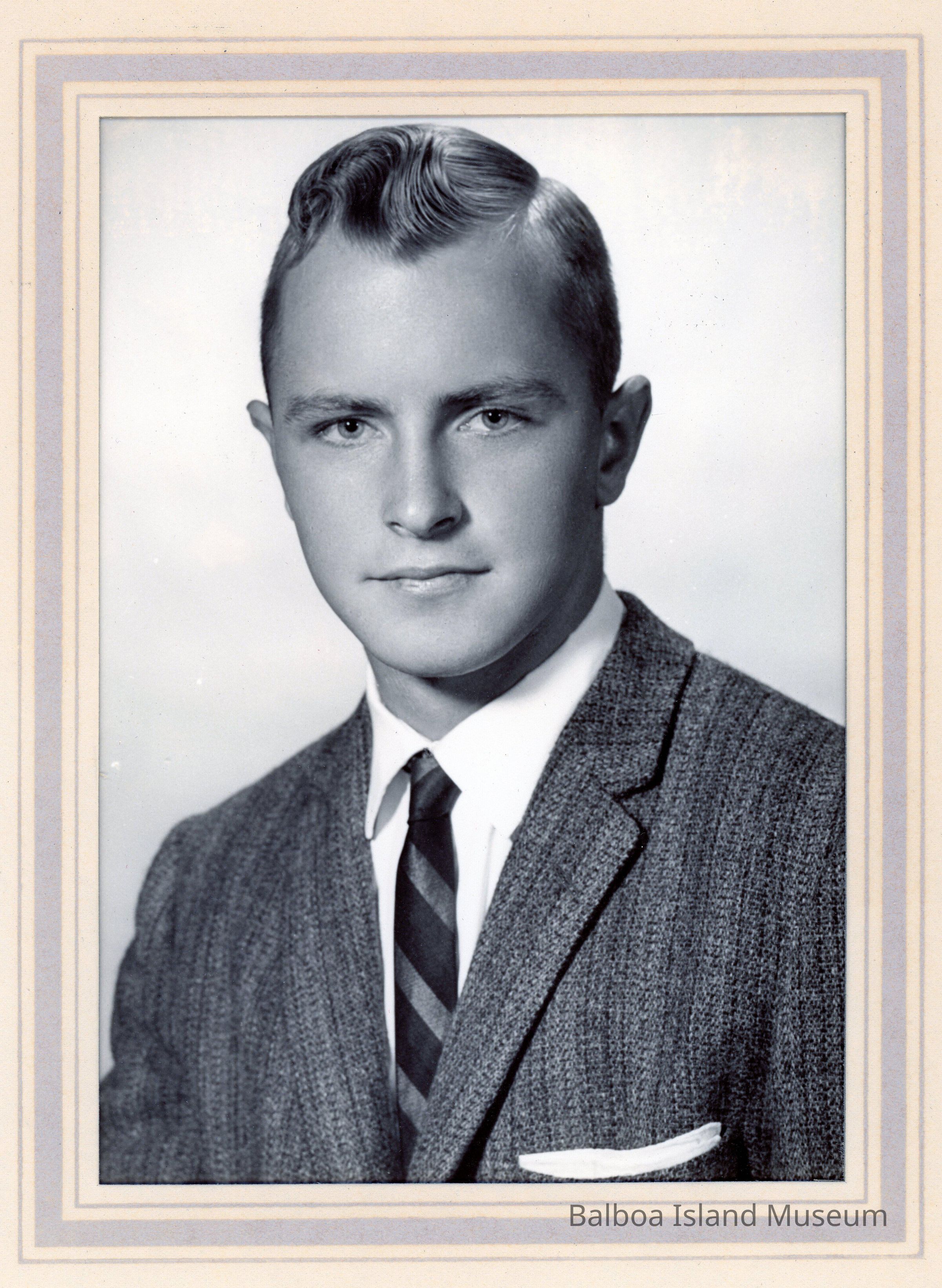 A photograph of a young man looking to the front mounted in a booklet like sleeve. He looks about 16 or 17 and is in a suit and jacket. The sleeve is light green.Collection