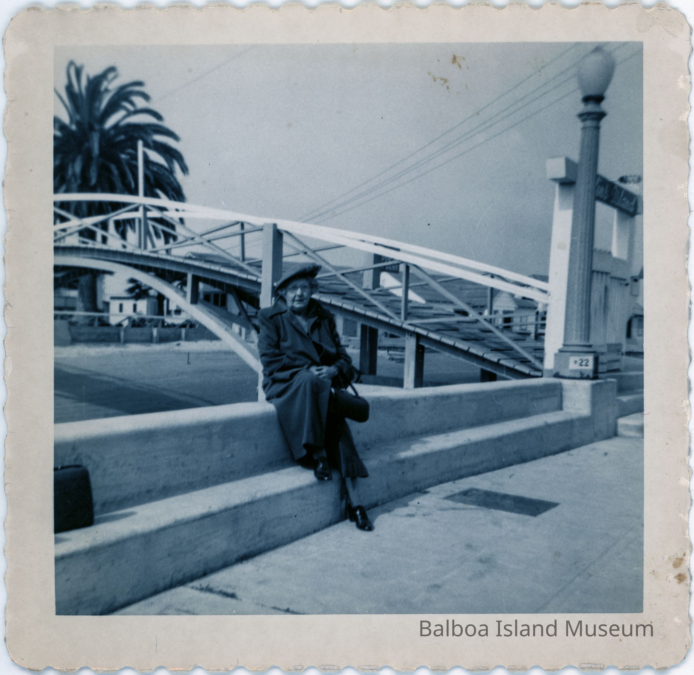 Woman from the McNamara Photo Collection sitting near the Collins Island BridgePhotograph Details
