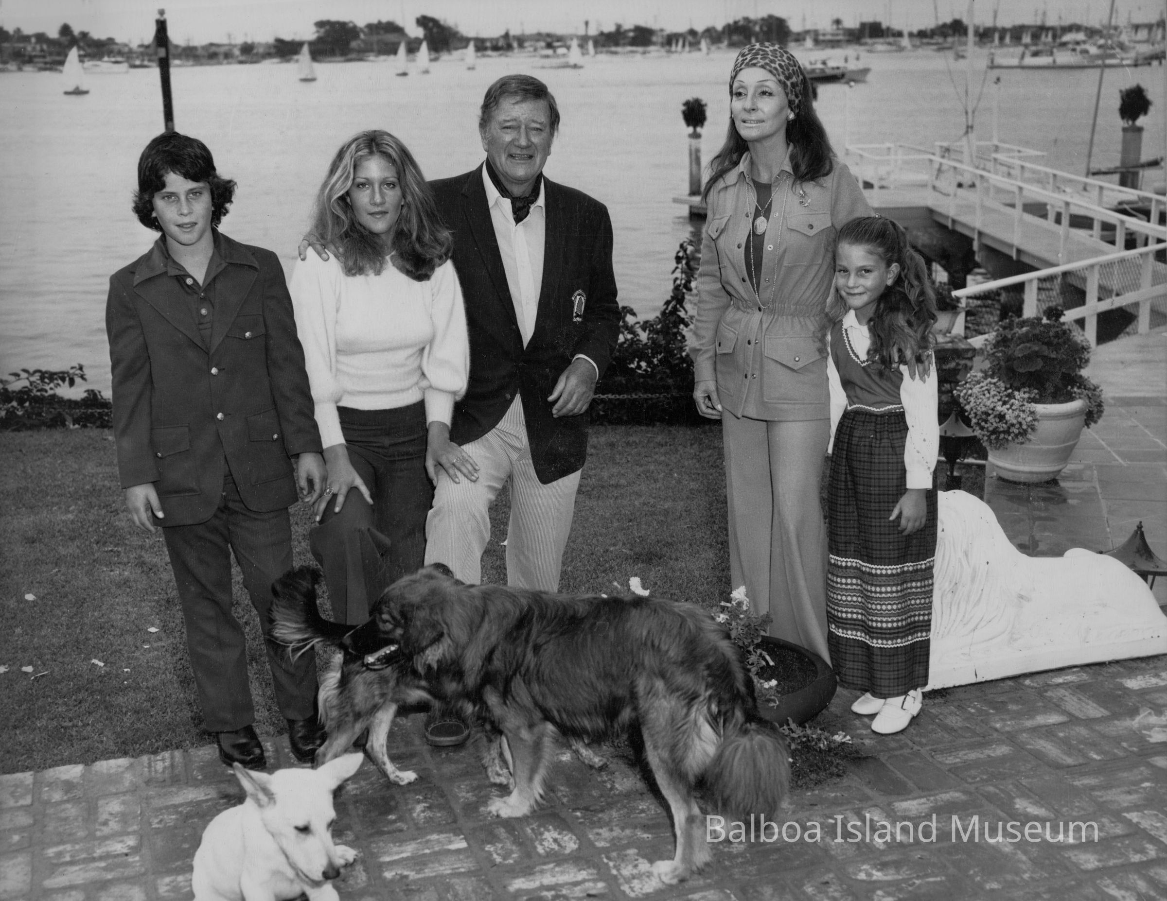 Photo of the Wayne Family with their three dogs in front of the dock of their Bayshore home as a laminated 8"x10" photographPhotograph Details
