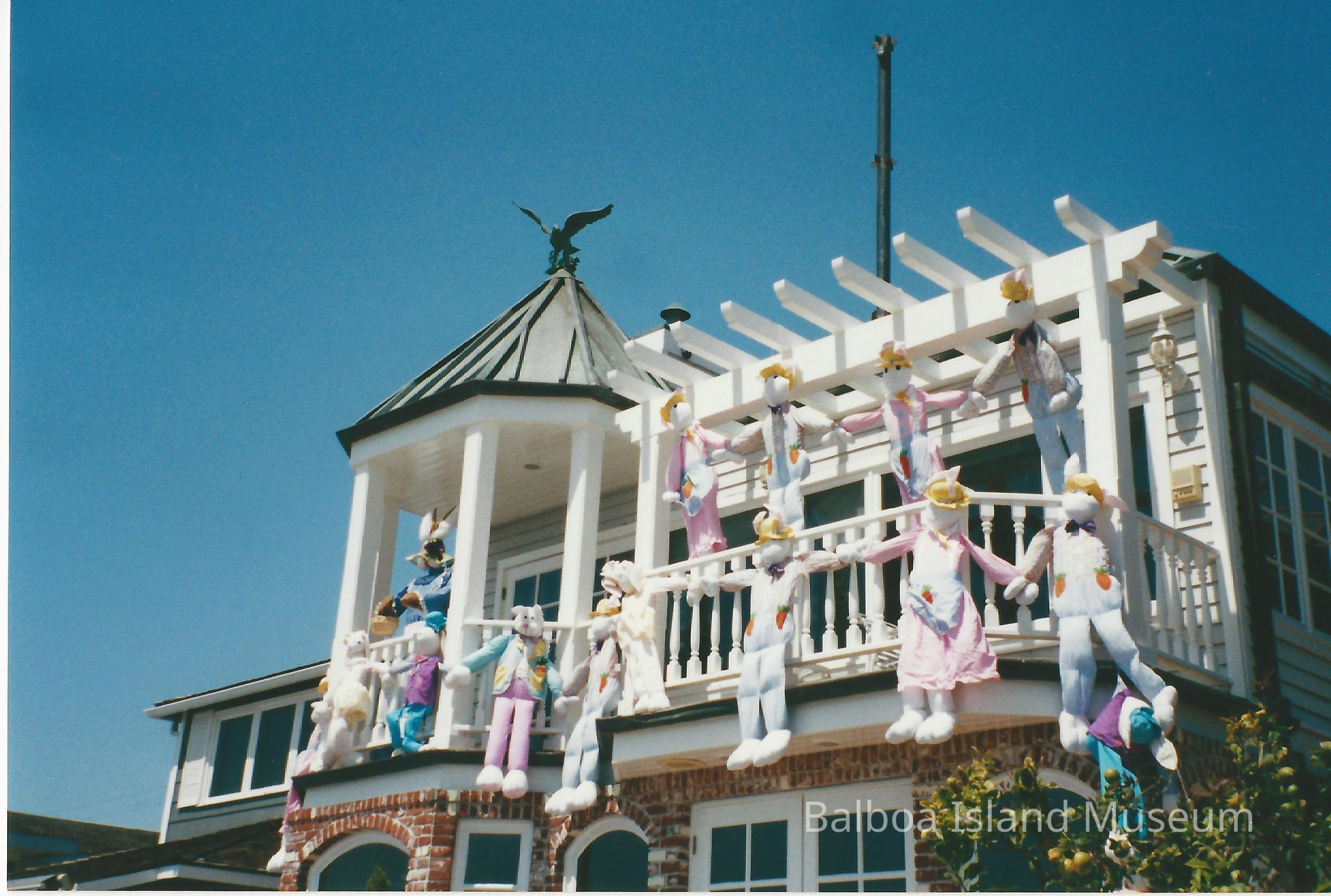 A photograph of the upper balcony of 802 South Bayfront decorated for Easter.Lexicon