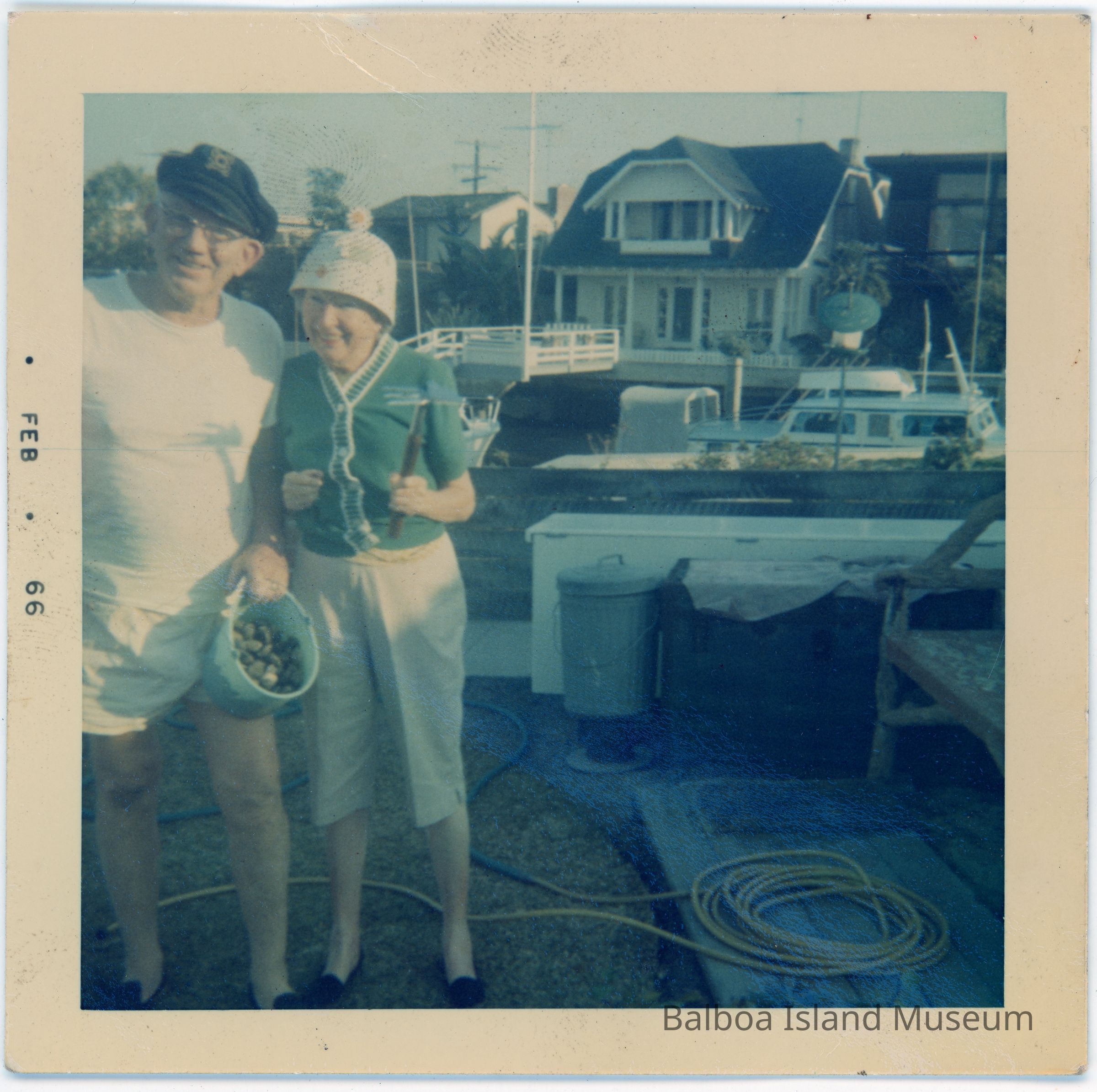 An older couple on Collins Island with 117 N. Bayfront in the backgroundPhotograph Details