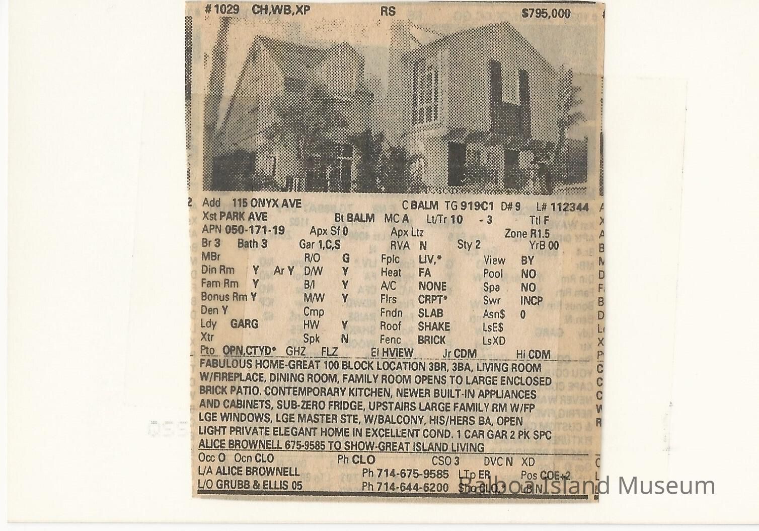 A color photograph of 115 Onyx Avenue. The house is still standing.Lexicon