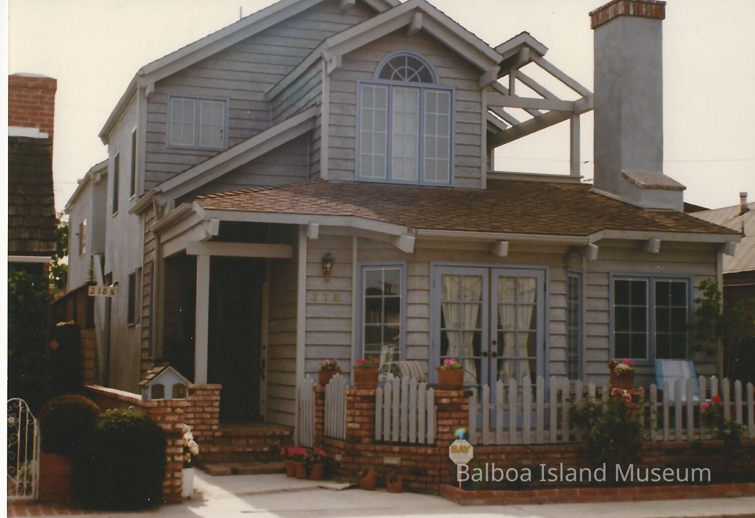 A color photograph of 218 Collins Avenue. The house istaken slightly from the left and shows the sign for 218.5 Collins Avenue on the side of the house. The house is still standing as of November, 2017.Lexicon