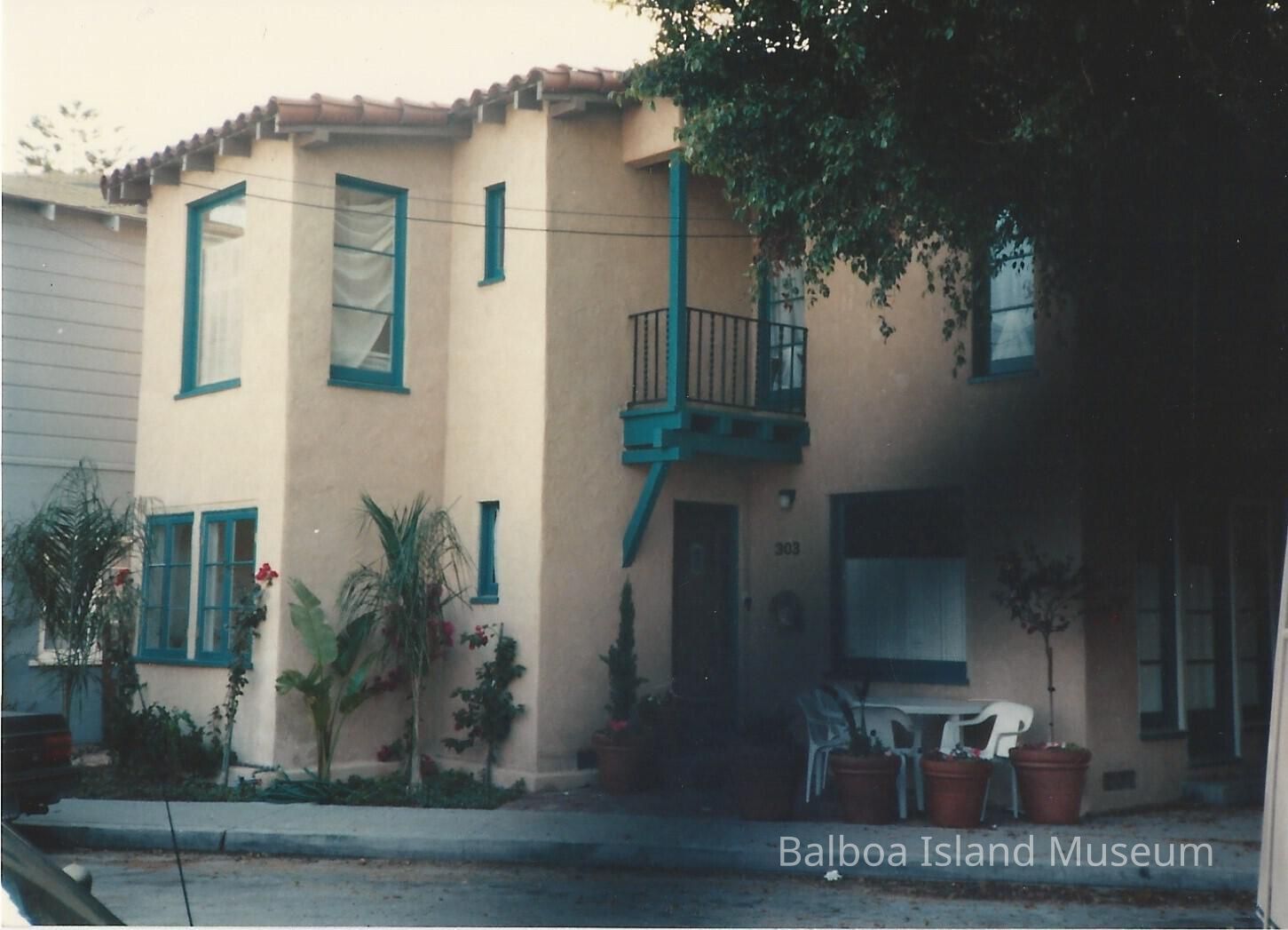 A color photograph of 303 Collins Avenue. There's a dark shadow across the right side from something. The house is still there as of November 2017.Lexicon