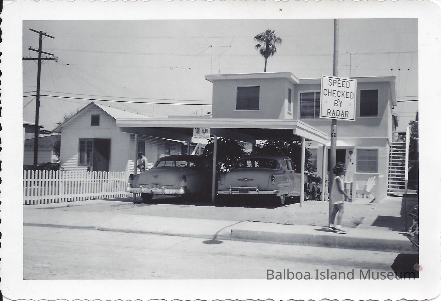 B&W photo of home at 124 Agate Avenue. Note on reverse says early 1950's. Little house on left was built in 1900, a honeymoon cottage.