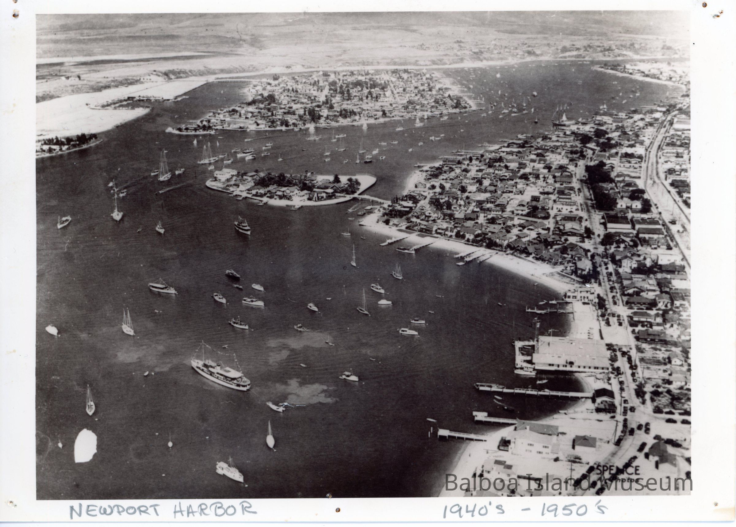 Aerial Photo of Newport Harbor Showing Bay Island, NHYC, 1940s-1950sEntry/Object ID