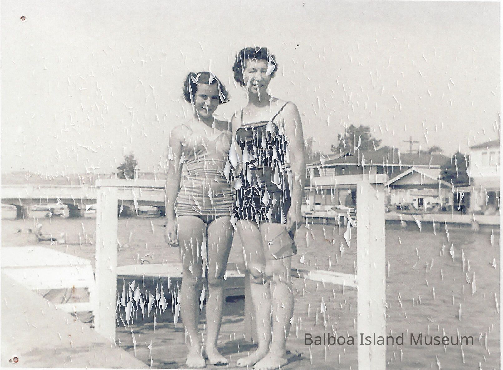 Shirlee Ann Grey with Aunt Jesslyn Eubanks standing on dock in the Grand Canal 1956.