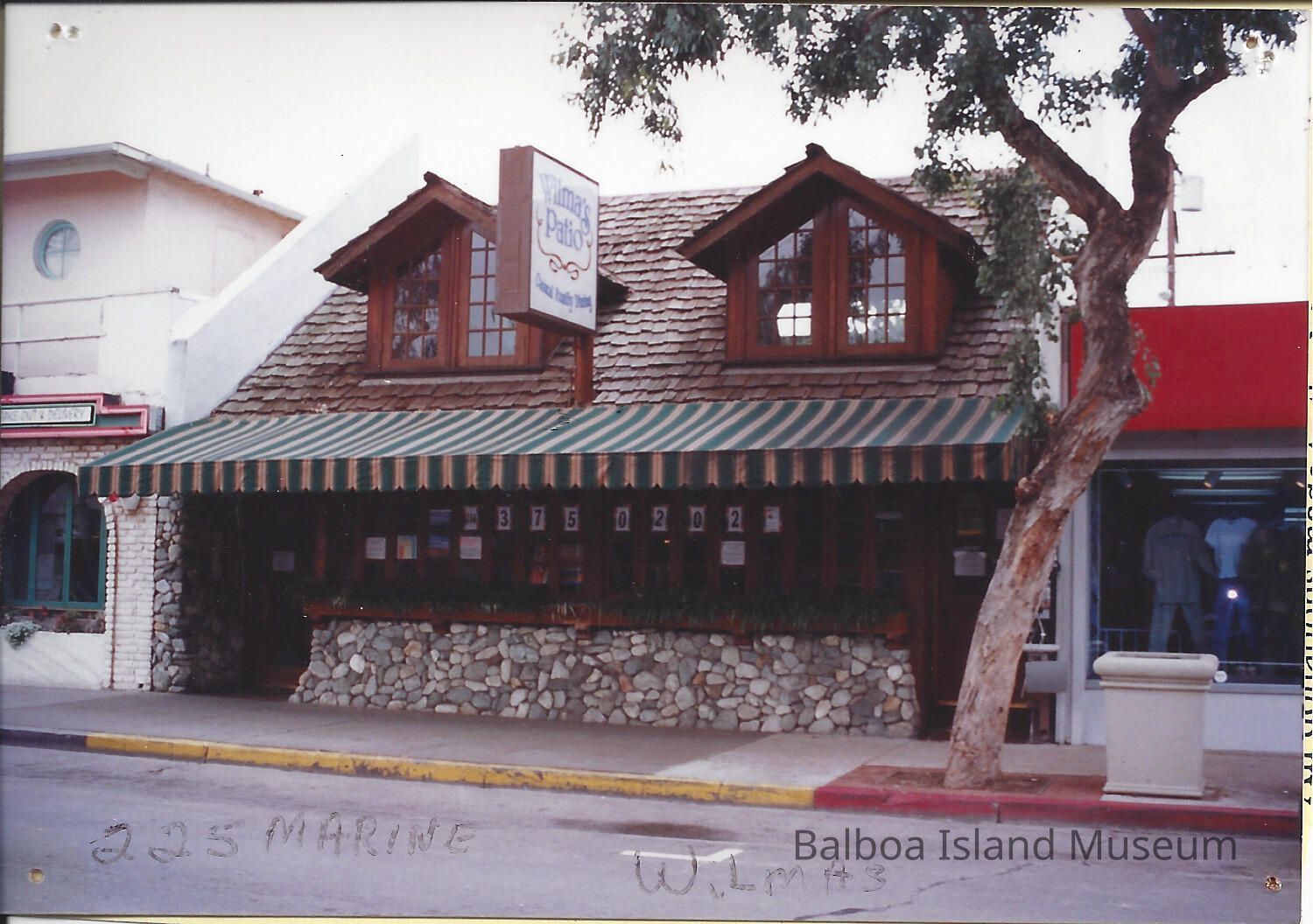 Color photo of the front of building at 225 Marine Avenue - Wilma's Patio. This restaurant later moved to the site of the Jolly Roger.