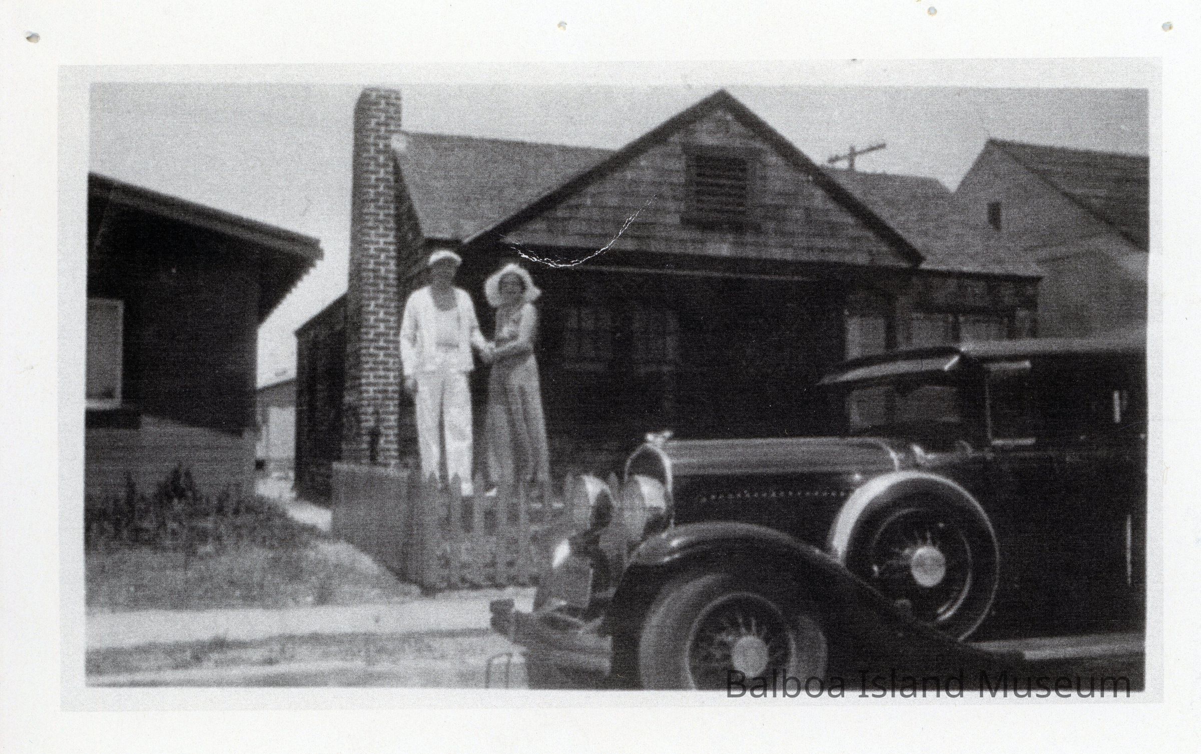 B&W photo of man and woman standing in front of the home - no address