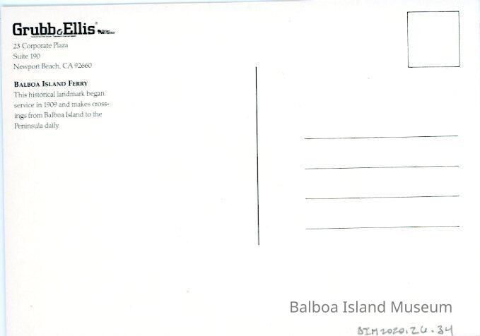 The back has the address for Grubb & Ellis and some historic information on the Balboa Island Ferry.Creator