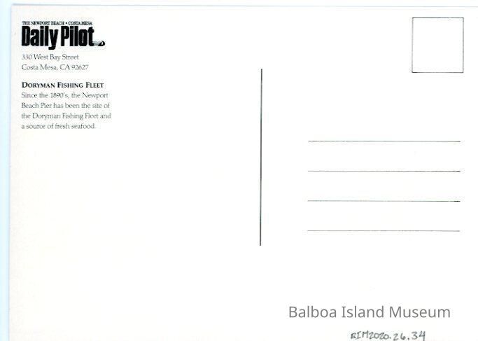 The back has the address for the Daily Pilot and some historic information on the Doryman fishing fleet.Creator
