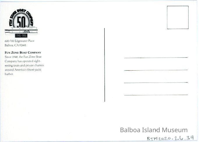 The back has the address and some historic information on the Fun Zone Boat Company.Creator