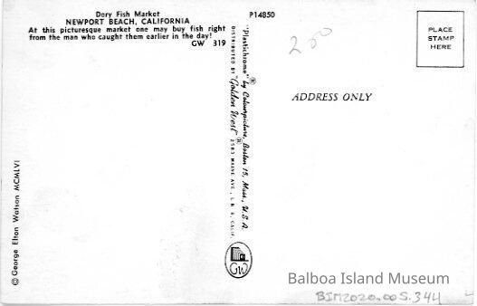 Unused. Published by Golden West in Long Beach and printed by Colourpicture in Boston. Photograph by George Elton Watson. Postcard number GW 319, print number P14850.Subject