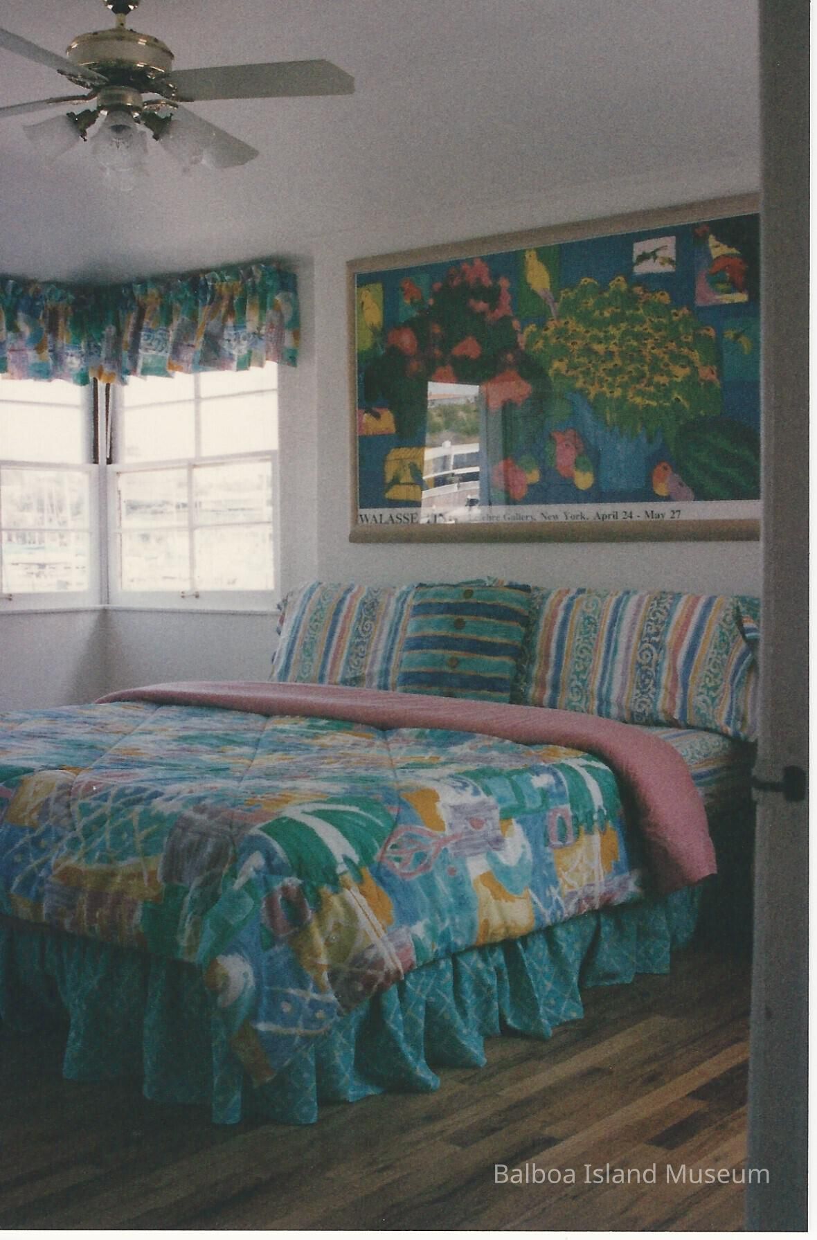 A photograph of a bedroom with a wooden floor in an old house on the Peninsula bayfront.