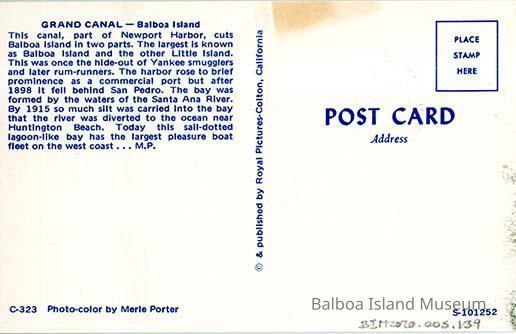 Unused. The back has a blurb on Grand Canal written by Merle Porter. Photograph by Merle Porter and published by Royal Pictures. Numbers C-323 and S-101252.Subject