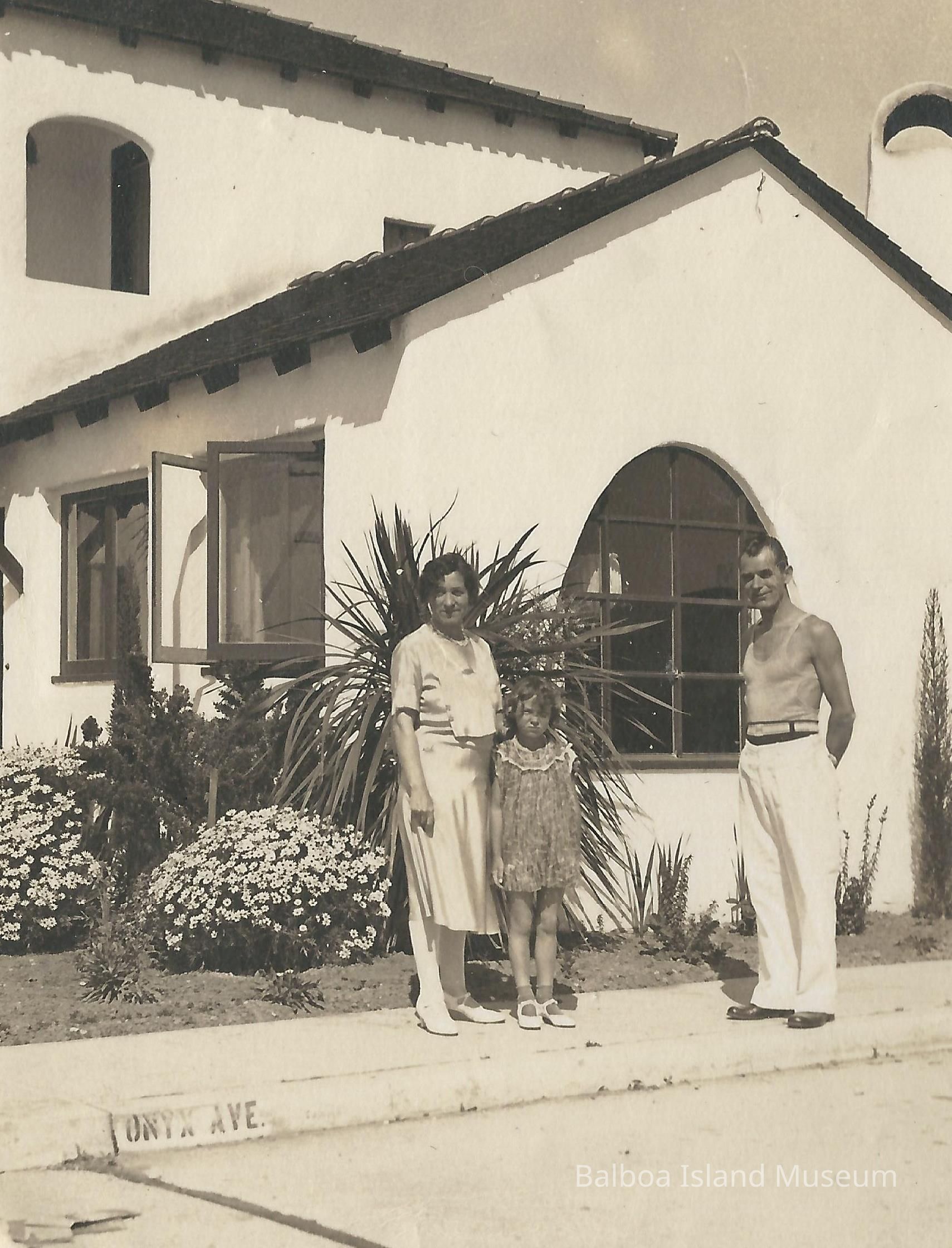 Mina Hershey, Ruth Hershey, and Tony Hershey infront of their home at 201 Onyx Avenue.Collection