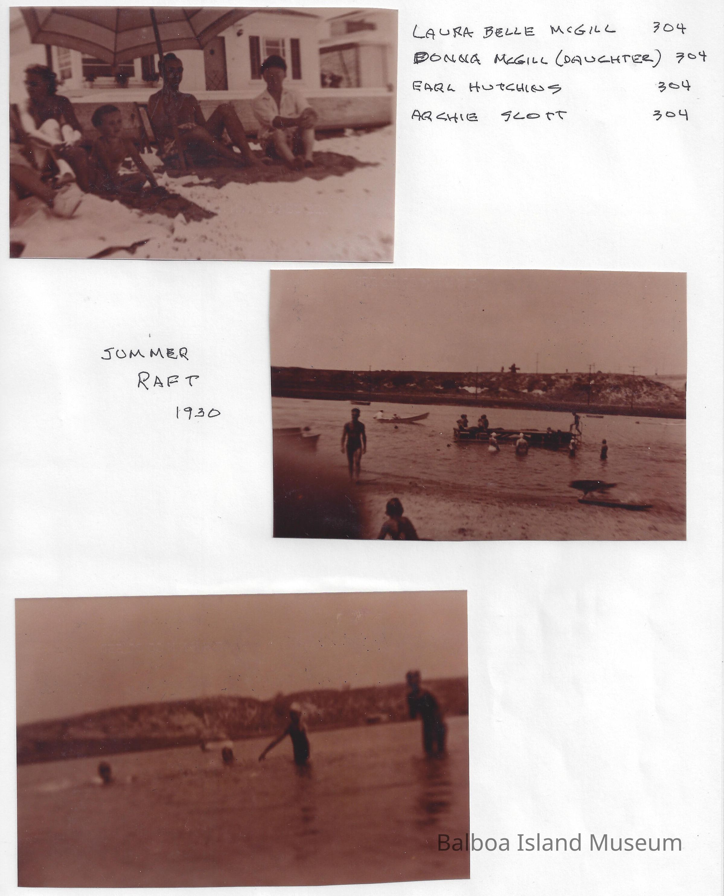 3 B&W photos of Summer Raft party on Apolena in 1930