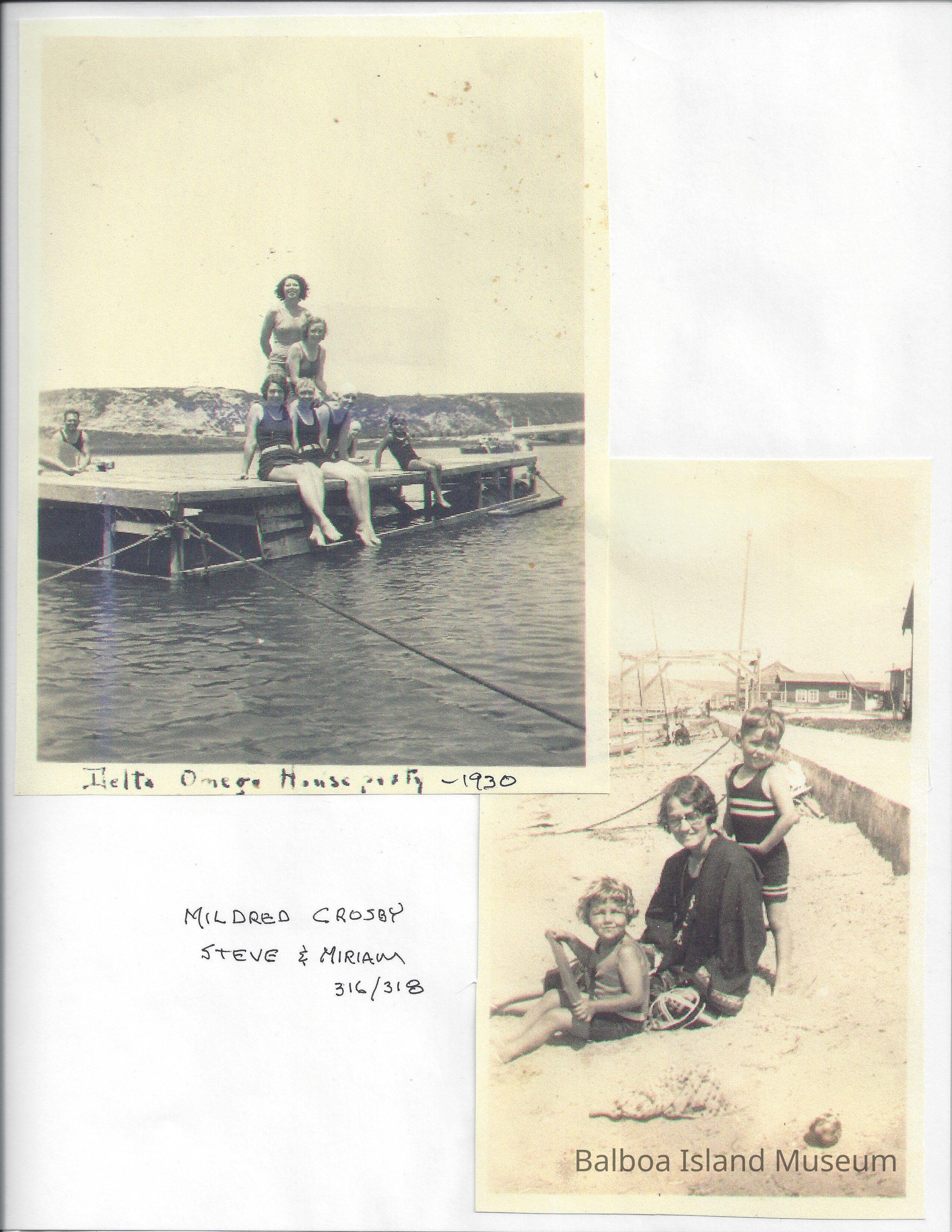 Photo 1: Delta Omega House Party 1930. Photo 2: Mildred Crosby (Mother) Miriam Crosby (daughter) and Steve Crosby (Son) lived at 318 Apolena Avenue. Their Family built 316 and 318 Apolena Avenue.Collection