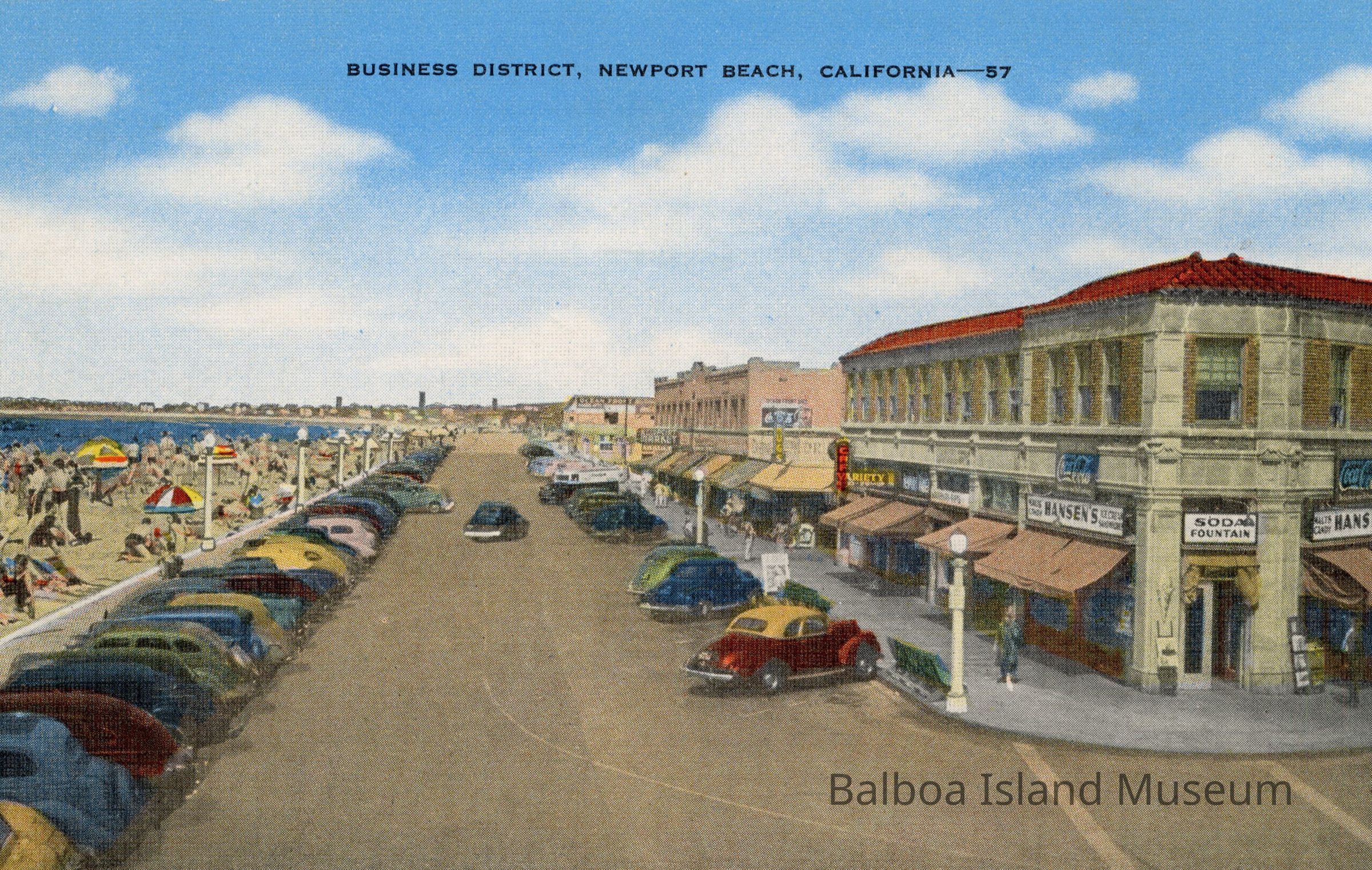 image of the business district on the peninsula and a very crowded beachPostcard Details