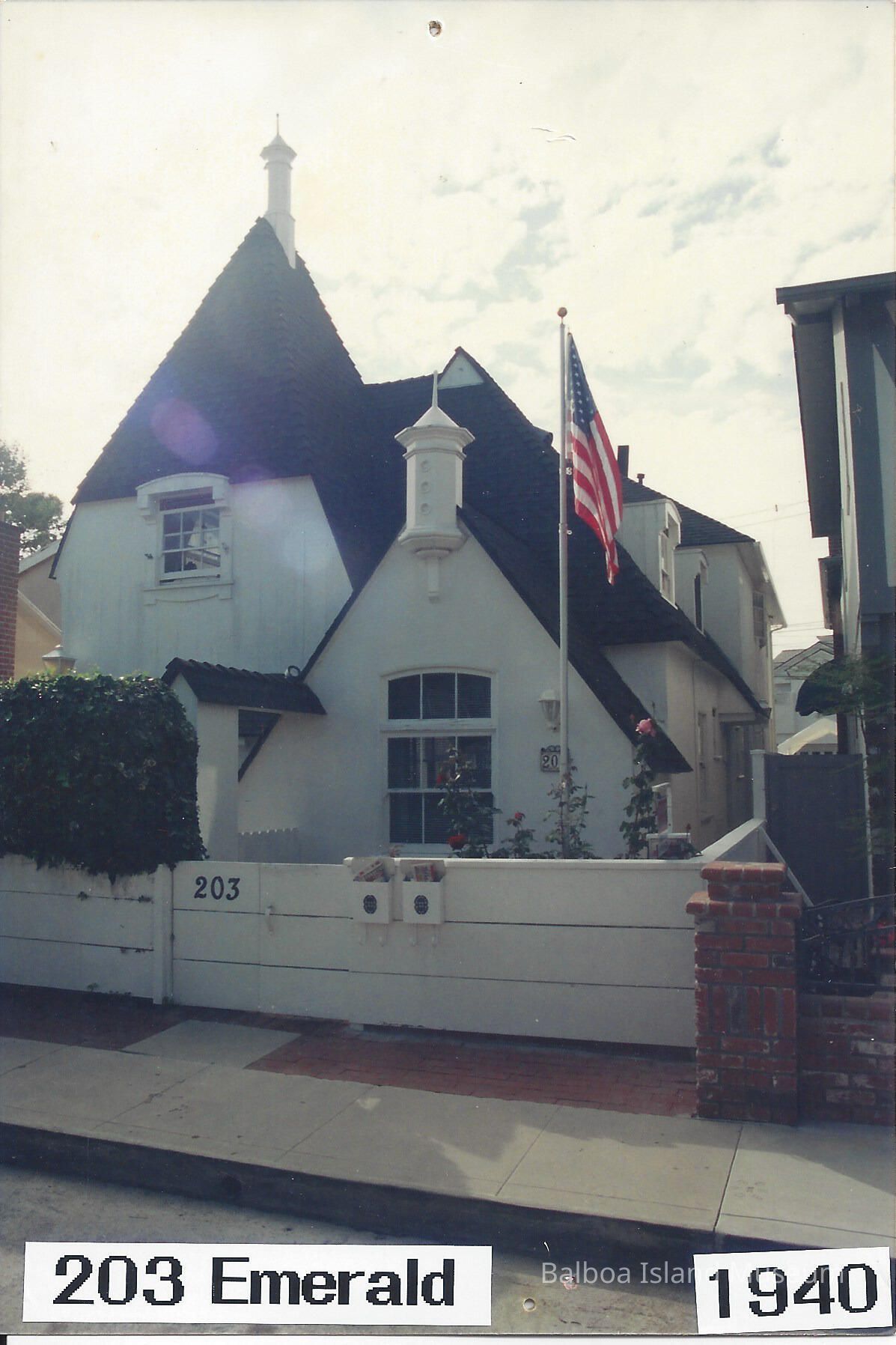 Color photo of front of home at 203 Emerald Ave from 1940.Lexicon