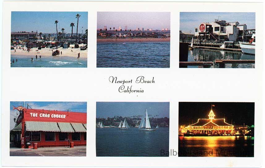 Bottom row, left to right: Crab cooker, sail boats in the harbor, the Balboa Pavilion at night