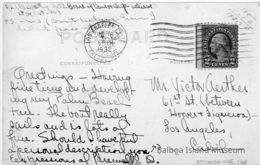 The back is plain with simple areas for Correspondence and Address. No information on publisher. Sent with a 2 cent red stamp. Post marked July, 1932.Subject