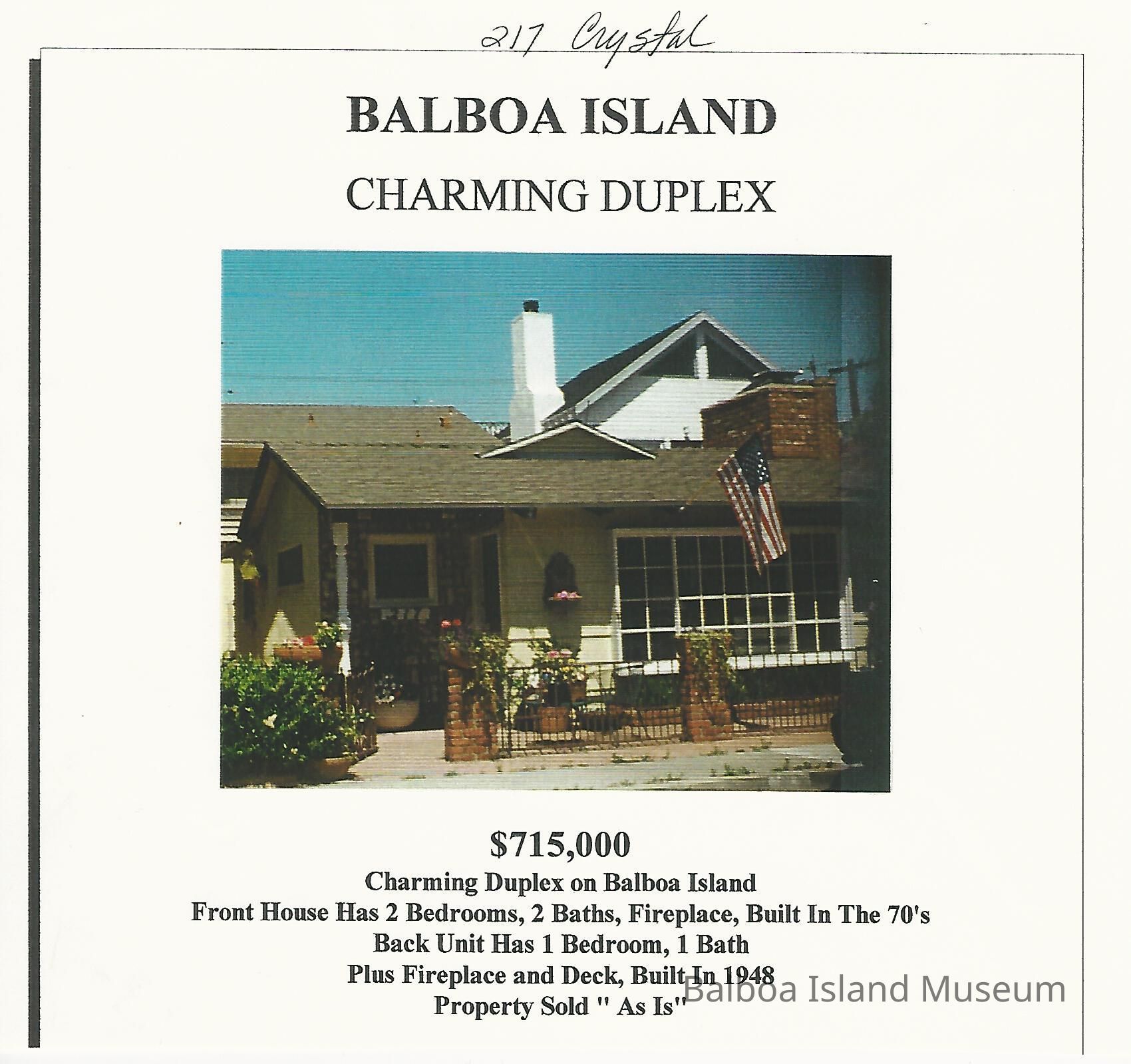 A color half flier for 217 Crystal Avenue. The price is listed at $715,000. The house is listed as having been built in 1948.Create Date