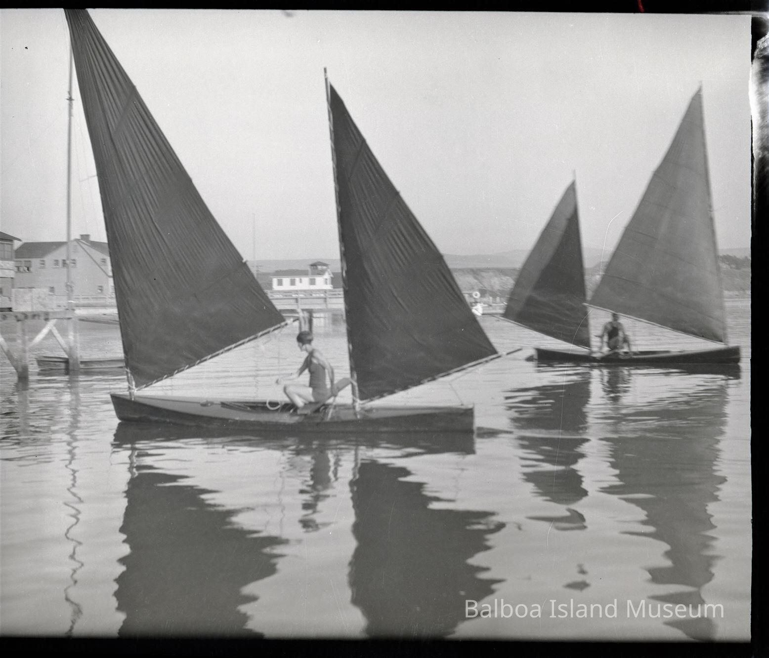 Sailing canoes were canoe or kayak shapes boats with two small sails, one on the front end and one behind the pilot.