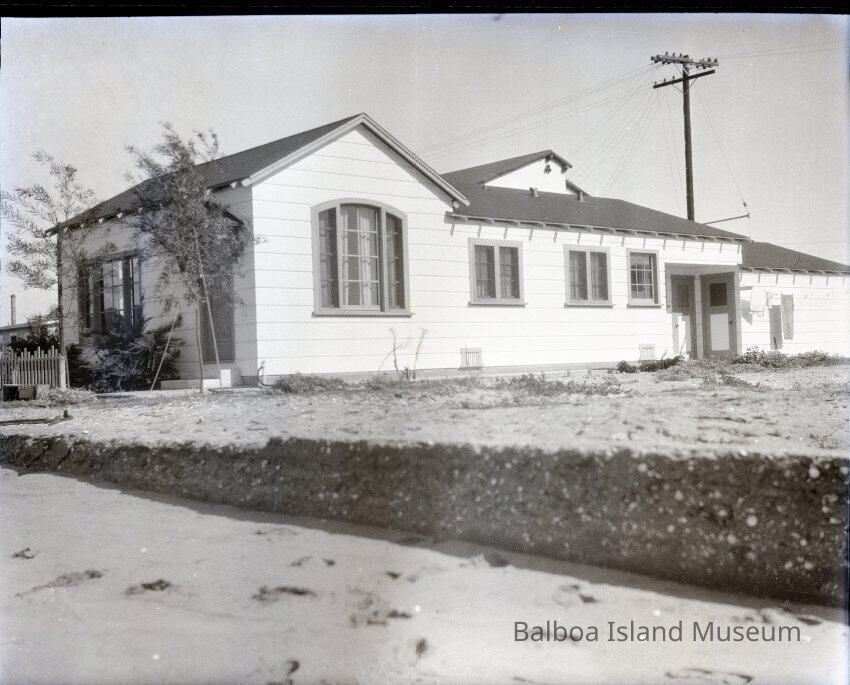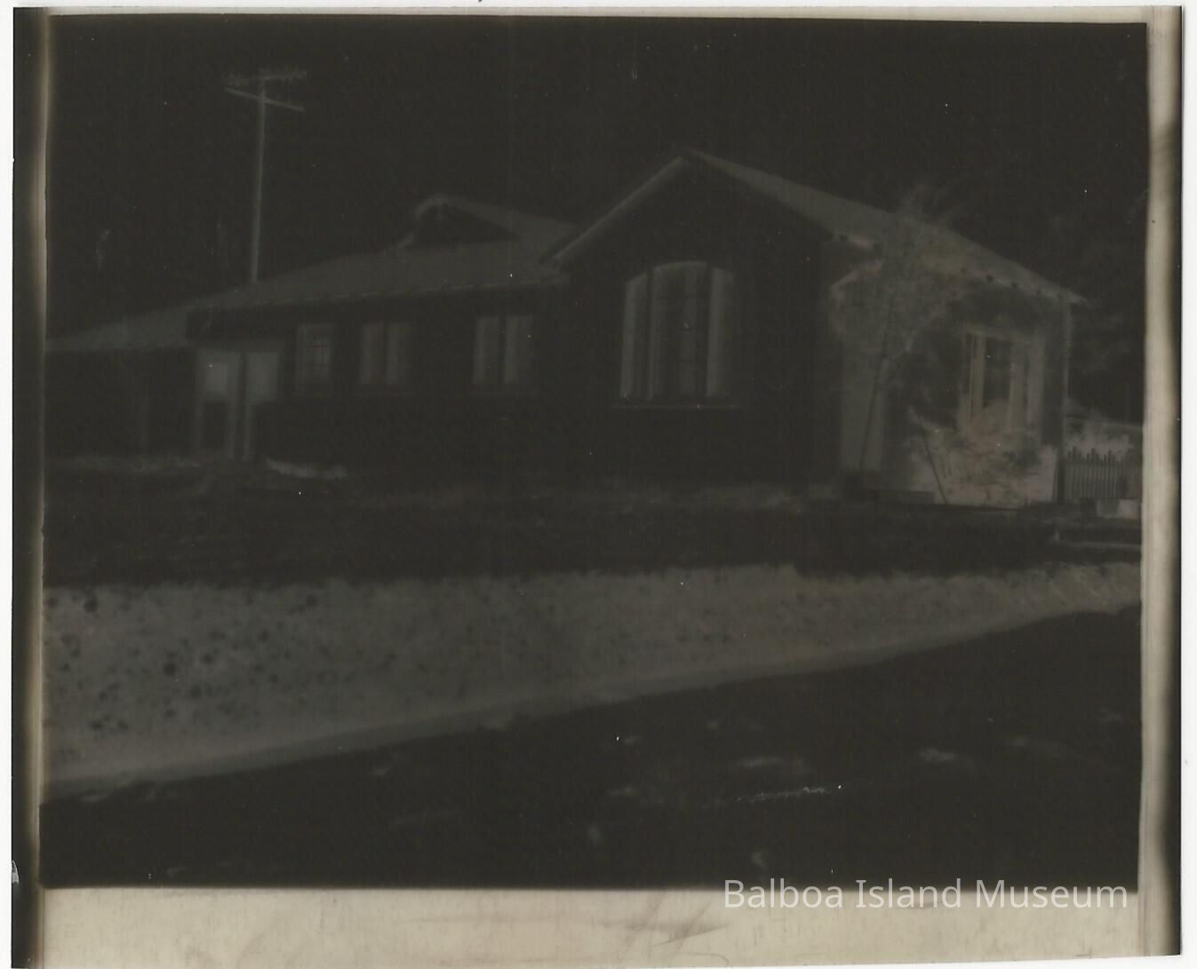 Unknown single story house with a dromer facing to the left along the side of the house. Long and narrow. There's a front door and two side doors.