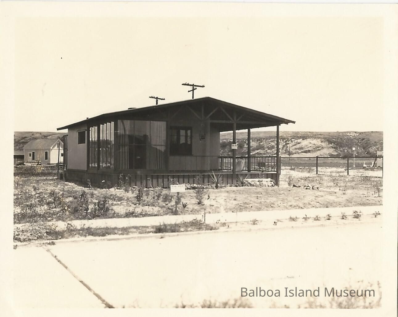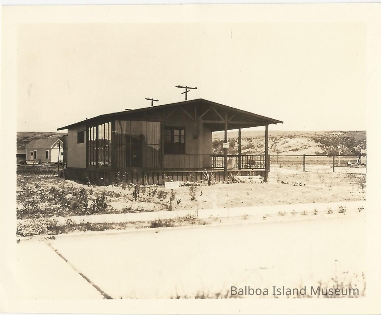 1702 Balboa Avenue. Original house prior to any remodeling. A ranch style house with a large front living room with huge windows and a recessed deck area. Other photographs show the beginning of an alley opening about twenty feet down from the house.
