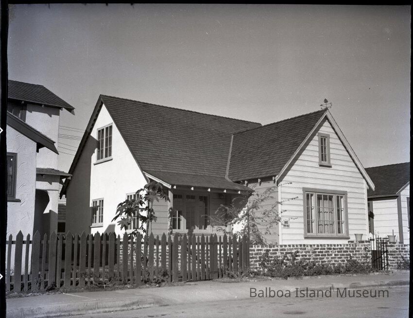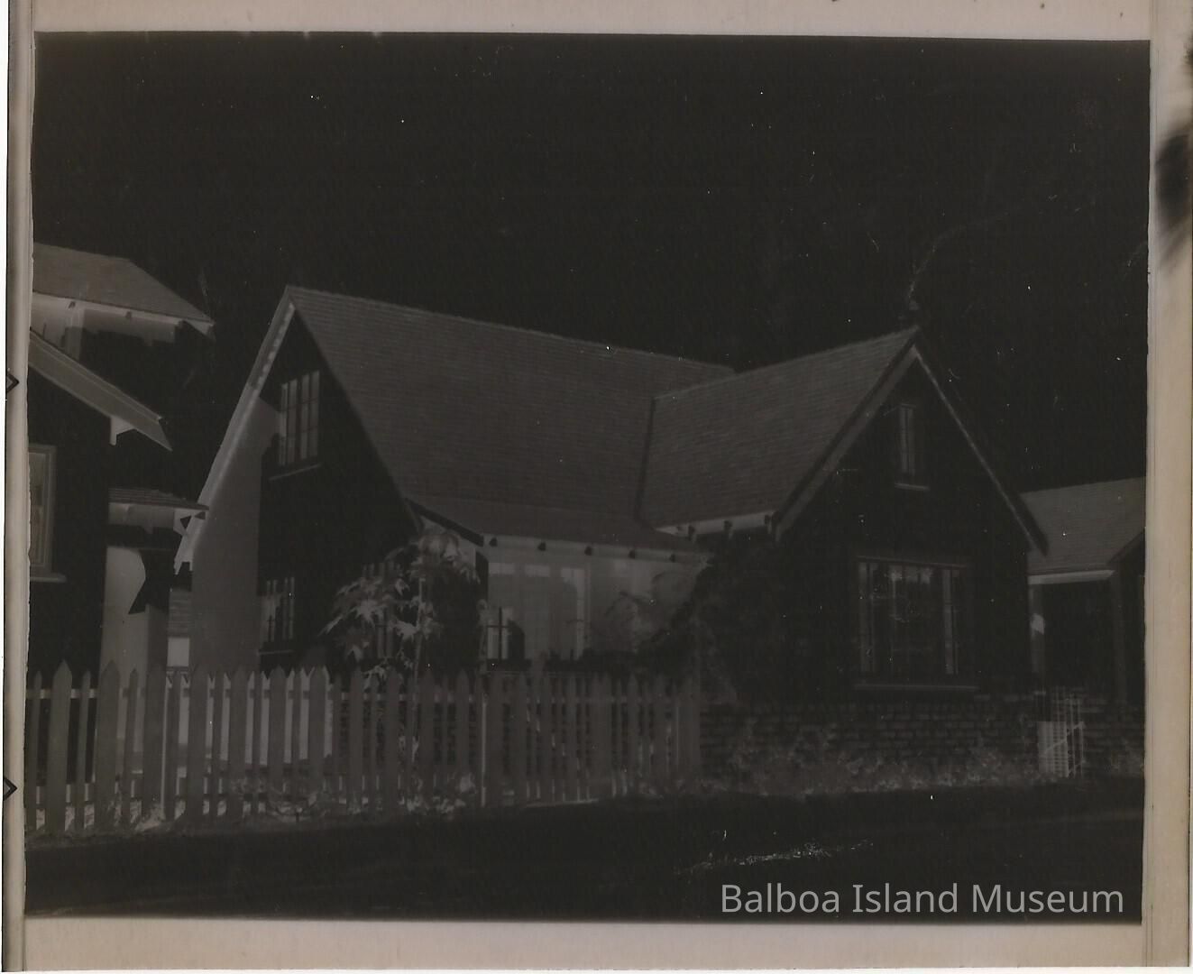 A negative of a photograph of an unknown house supposedly on coral Avenue previously belonging to Kenith Fultor. The house is two stories with a cross-sloping roof and extended front right half with the door set in that right wall on the front porch. 4/15/19 update: identified as 315 Coral.