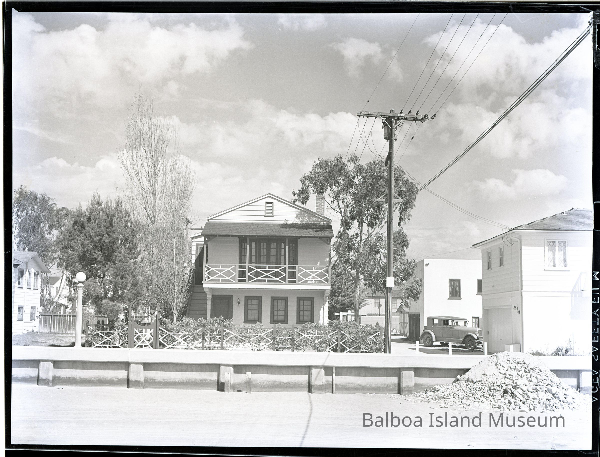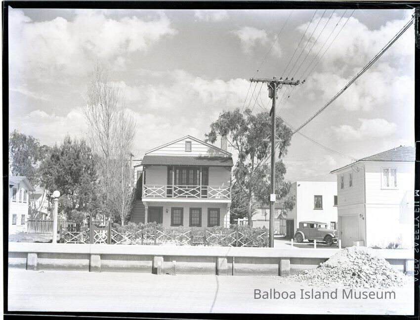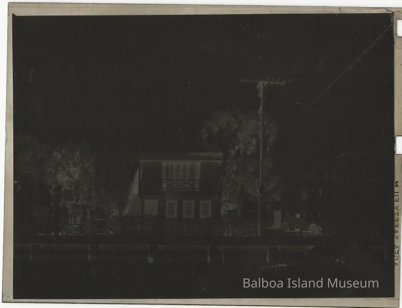 Two negatives of the same shot of 106 Grand canal. One is slightly blurry and the other one is not. One also appears thicker. Taken from across the canal prior to a later remodel. The exterior staircase is now gone and the house has been expanded. Envelope: 26-1-5 (Lot 26, block 1, Section 5) Eames House.