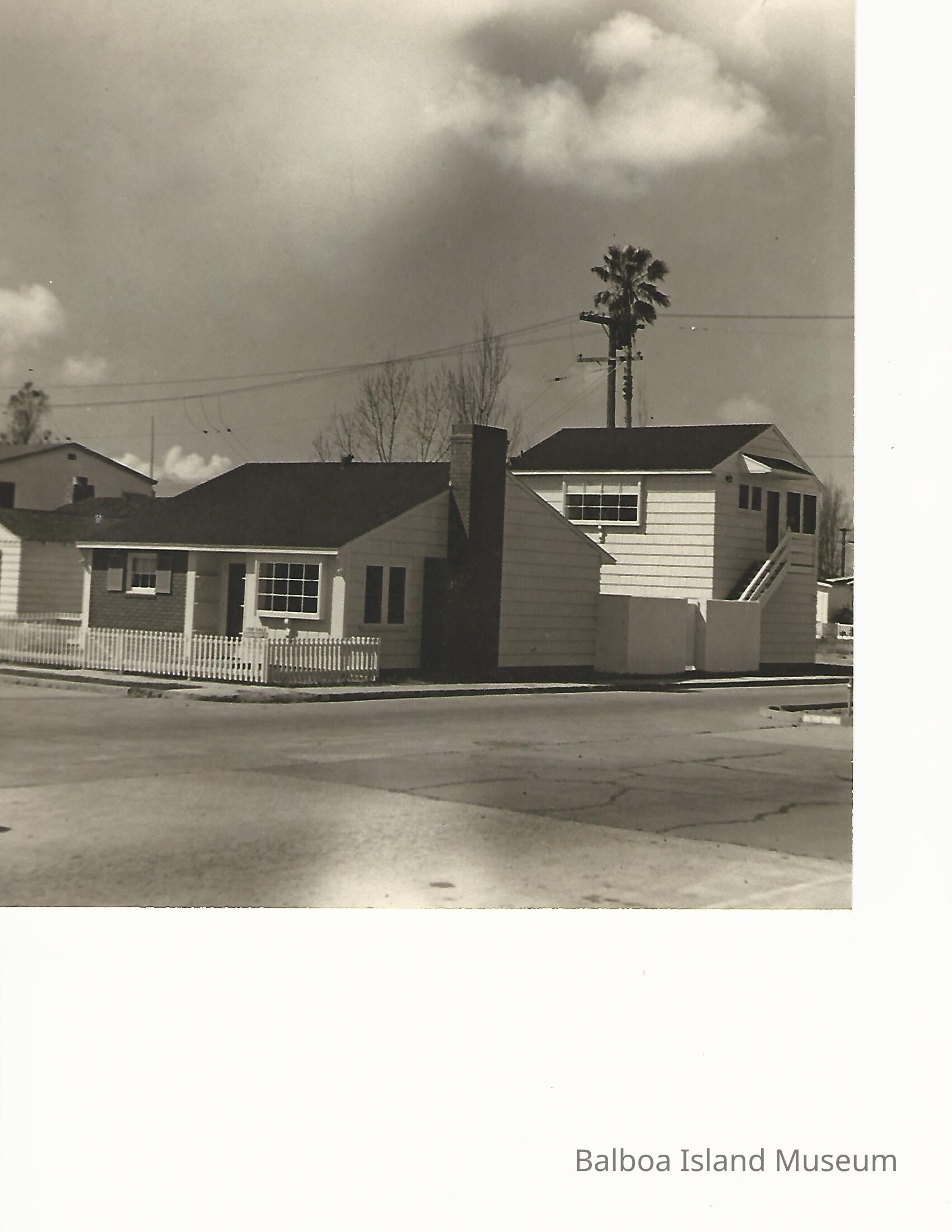 A photograph of a house on a corner of Park Avenue. It's a front and back unit, with the back unit being separate and over the garage. The space between the buildings has a solid brick wall with a gate in it. The front house has a sloped roof and a bay window along with a fireplace on the street side.