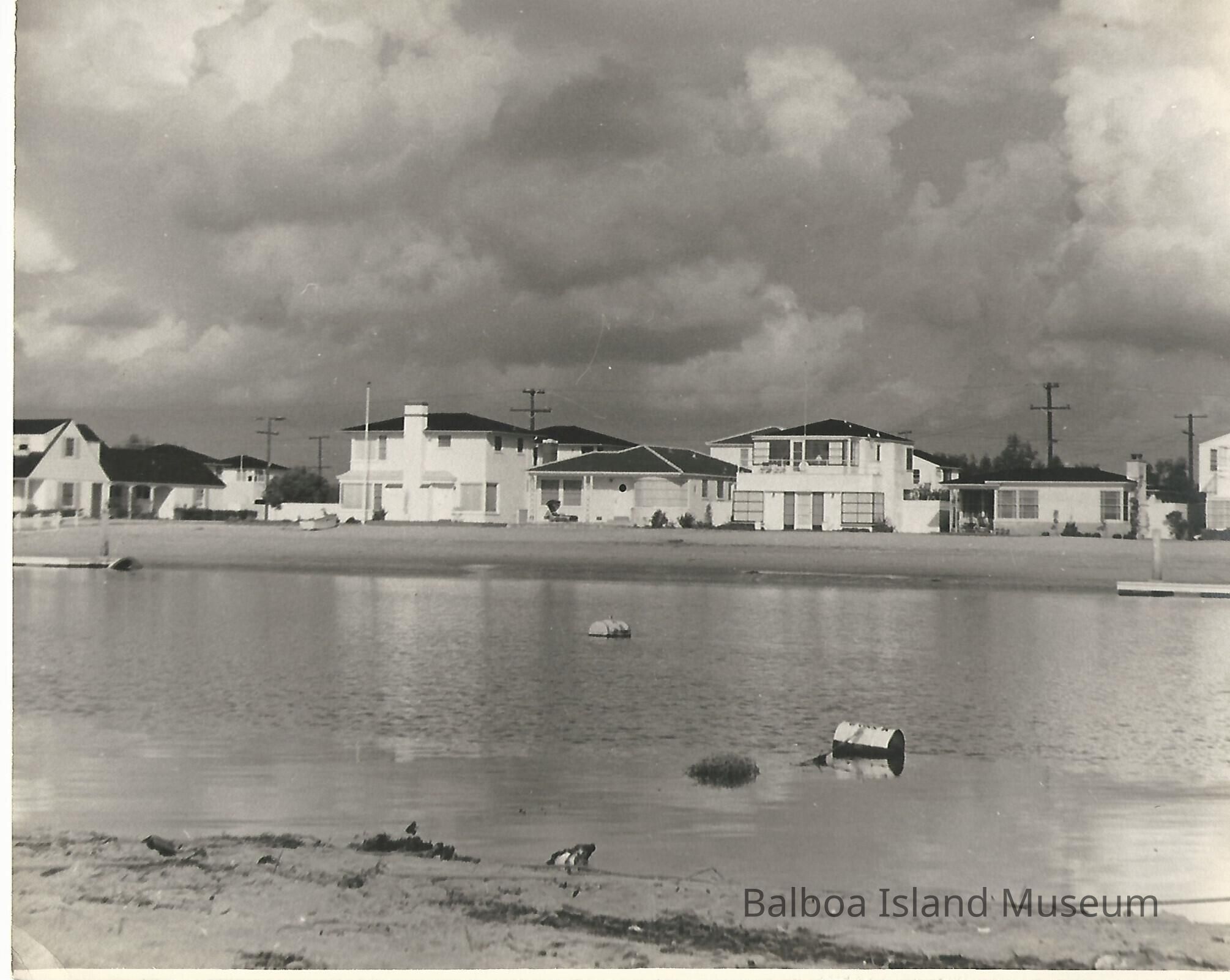 A 8x10 black and white photograph of a series of houses along a beach. The houses are supposedly in Beacon Bay.