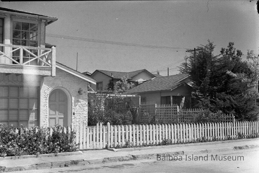 B&W photo of the front of homes at 112, 114, and 116 Onyx Avenue.