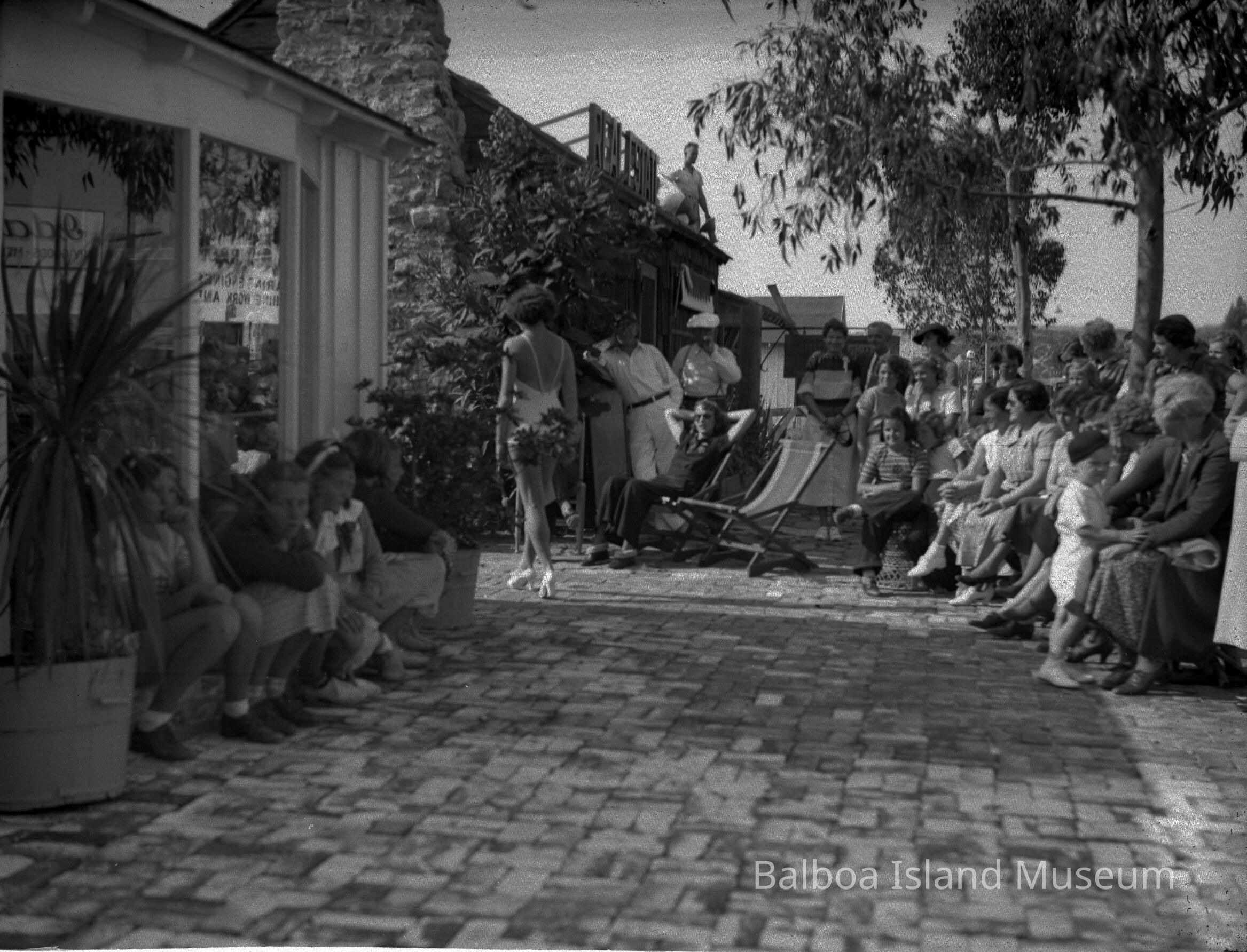 B&W photo of Deschamps Clothing Fashion Show in 1935 on Marine Avenue.Collection