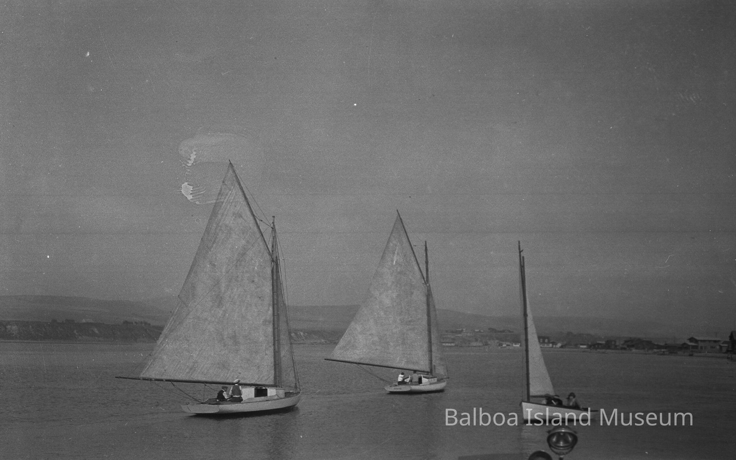 B&W white photo of 3 sailboats. The envelope with negatives says 'The Wave 1922'Collection