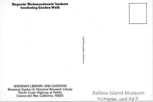Unused. Published by Sherman Library & Gardens. Photograph by James Arlon.Subject