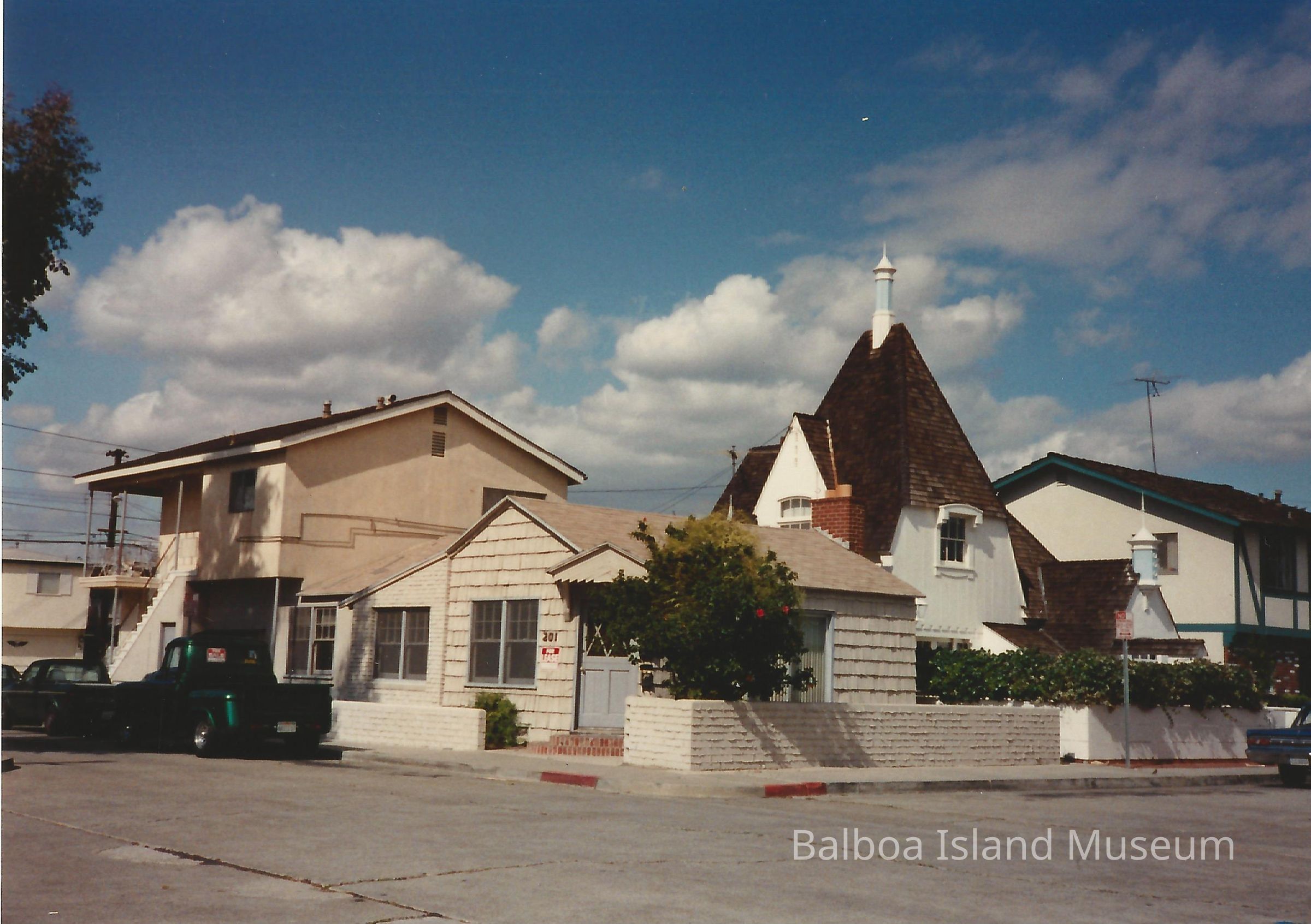 A wide-view image of 201 Emerald showing both the front and back portions of the house as well as 203 Emerald next door. Torn down in 2010. Two copies.