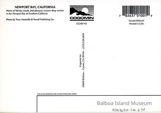 Unused. Published by Cogomin Inc. in Carson, California. Photograph by Tony Marinella. Printed by Terrell Publishing Co. Postcard number CG-00142, printer number Terrell 0993341.Subject